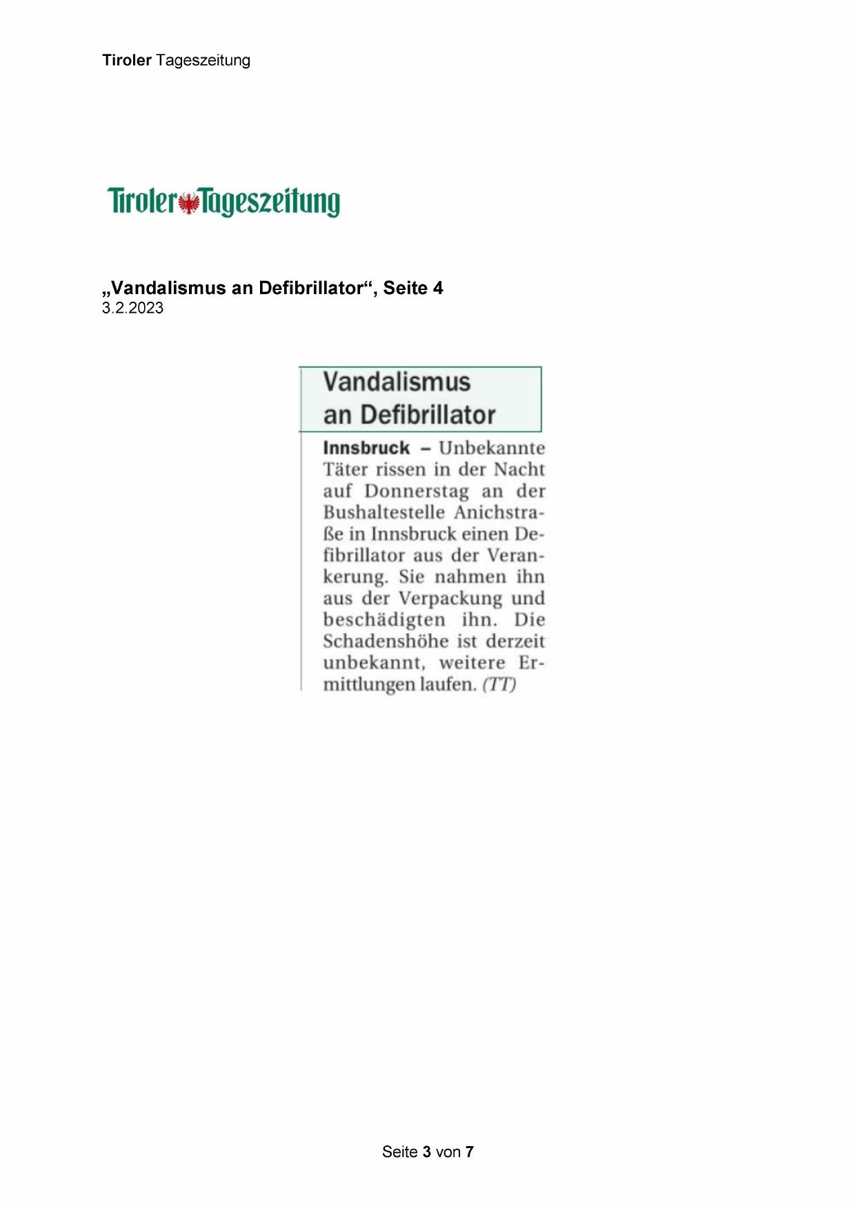 Bushaltestelle Anichstraße in Innsbruck einen Defibrillator aus der Verankerung. Sie nahmen ihn