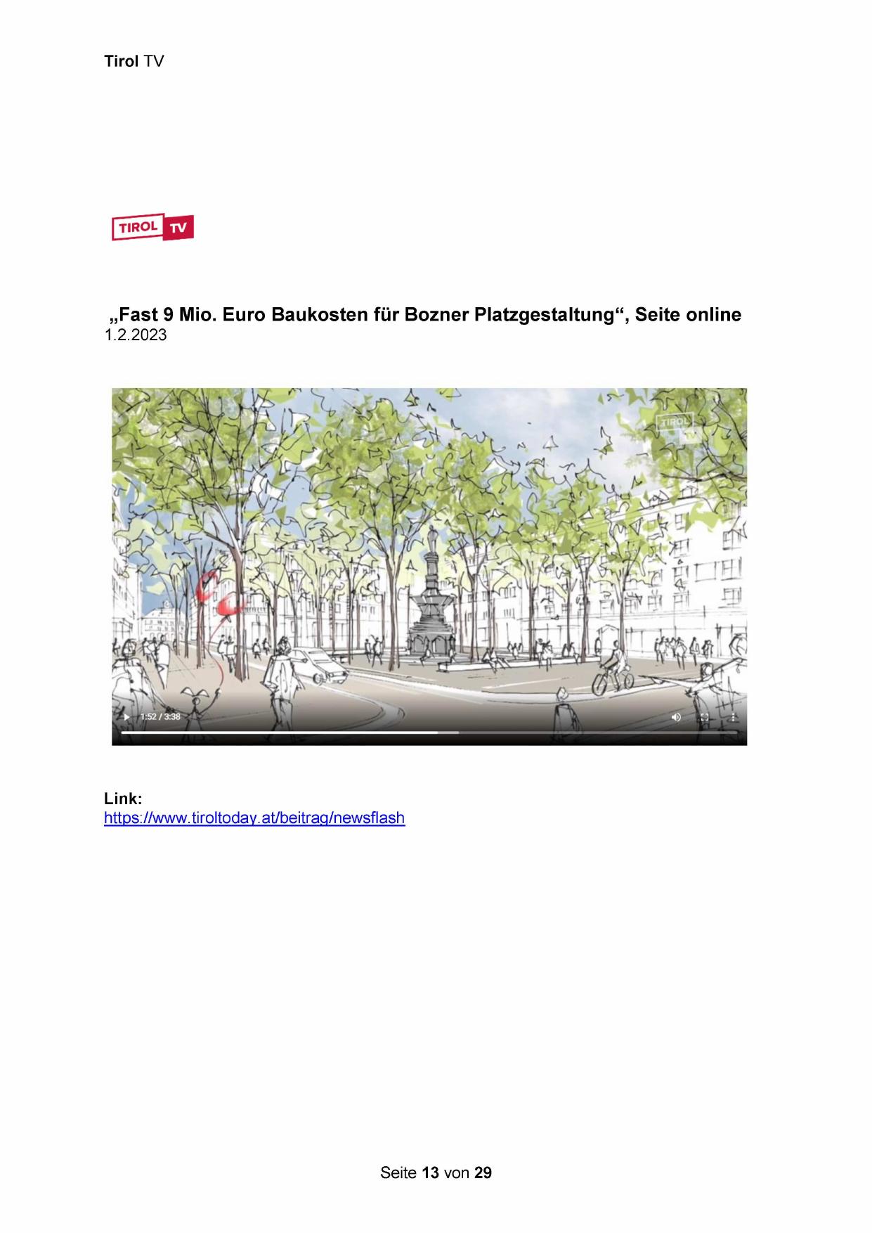 „Fast 9 Mio. Euro Baukosten für Bozner Platzgestaltung“‘“, Seite online