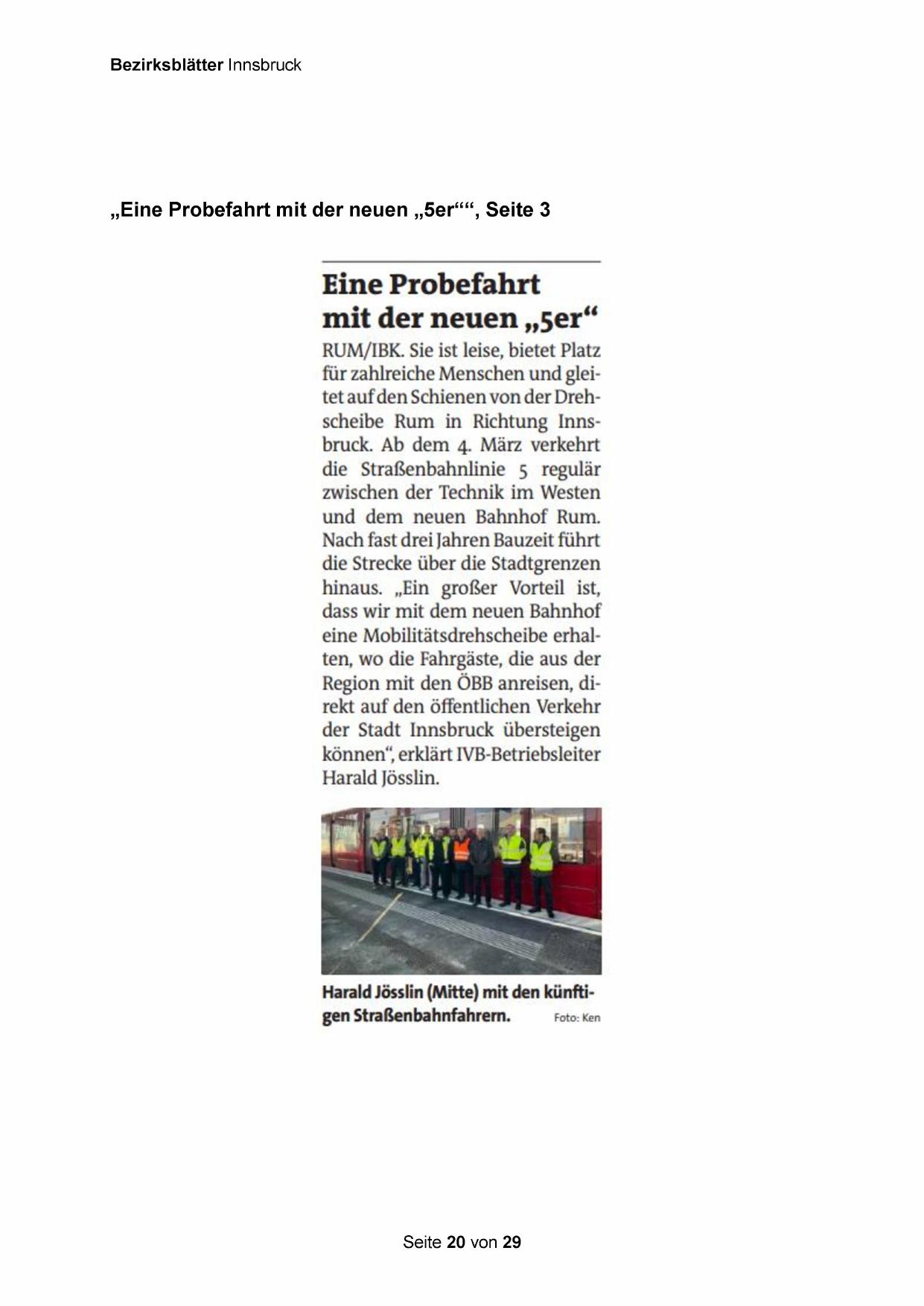für zahlreiche Menschen und gleitet aufden Schienen von der Drehscheibe Rum in Richtung Innsbruck. Ab dem 4. März verkehrt