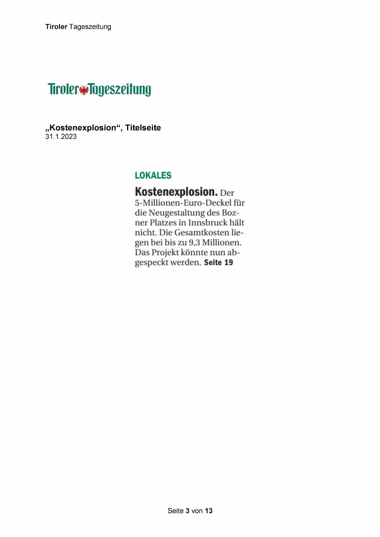 die Neugestaltung des Bozner Platzes in Innsbruck hält