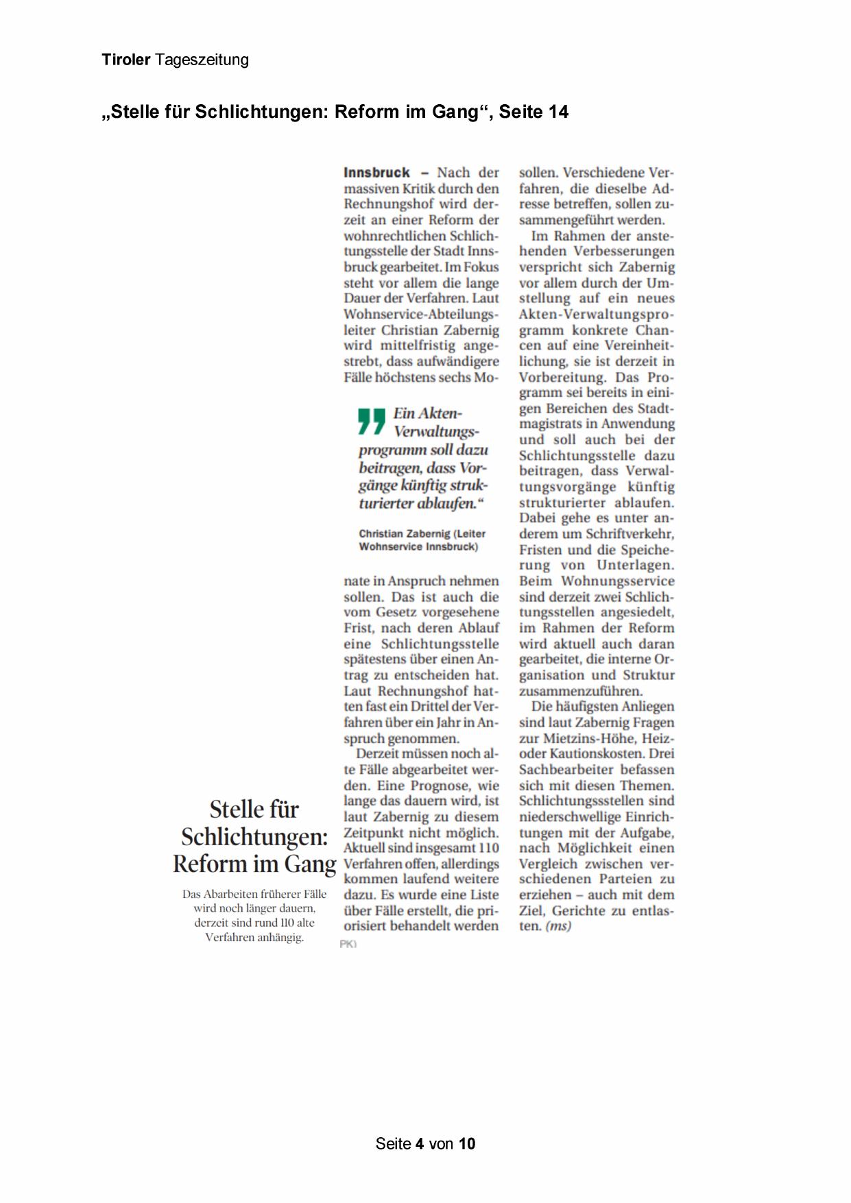 wohnrechtlichen Schlichtungsstelle der Stadt Innsbruck gearbeitet. Im Fokus