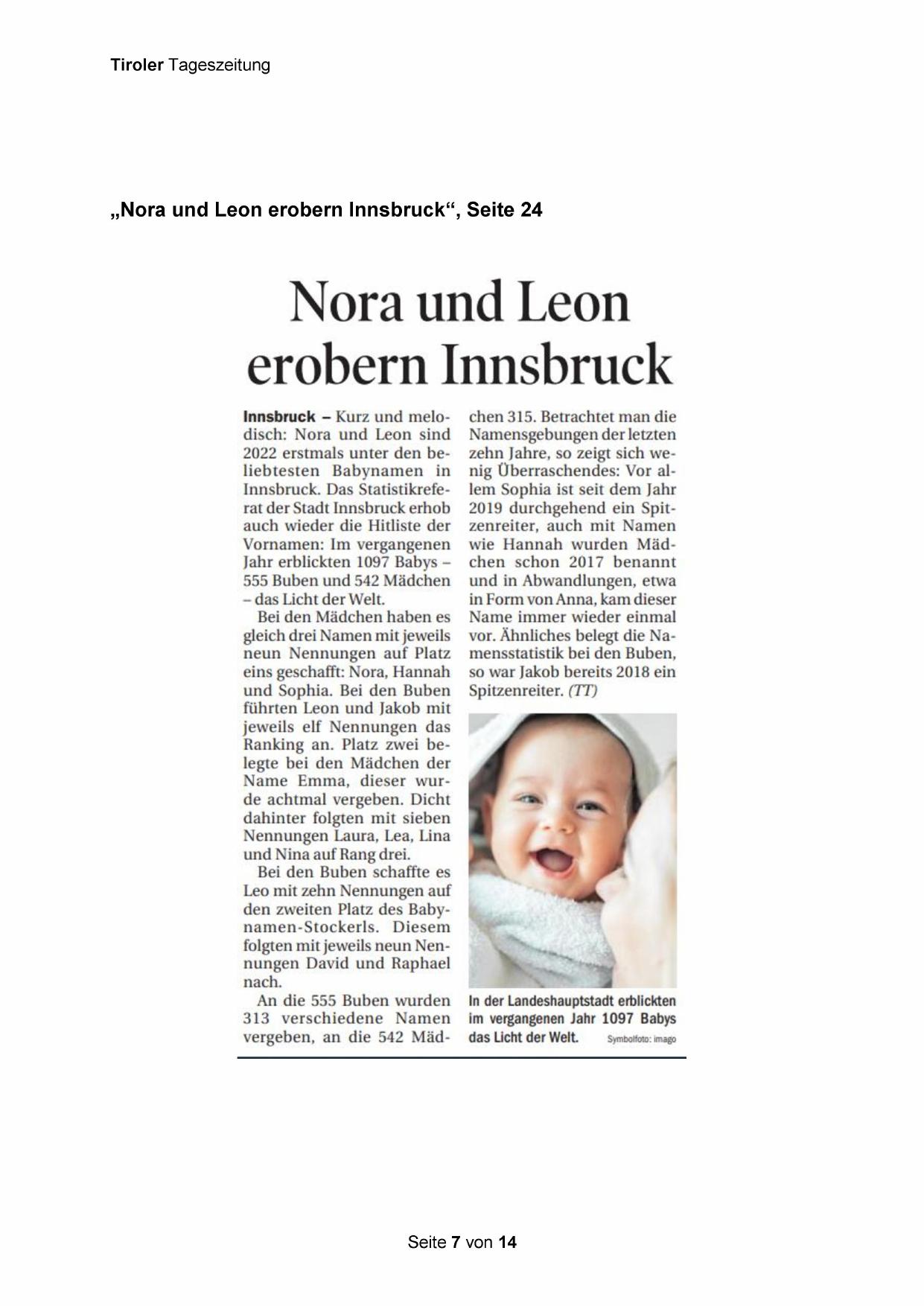 Innsbruck. Das Statistikreferat der Stadt Innsbruck erhob