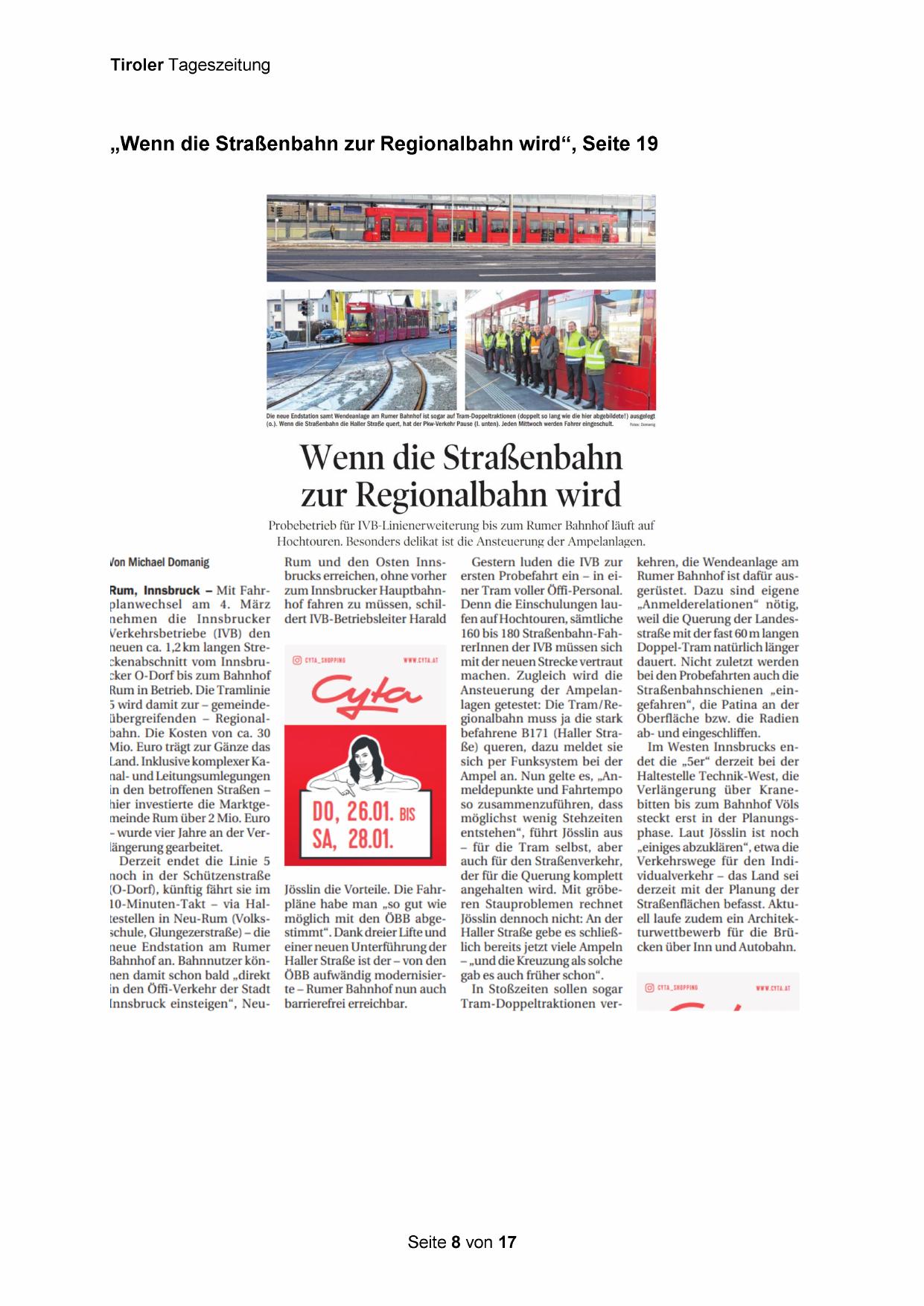 Rum, Innsbruck — Mit Fahrplanwechsel am 4. März