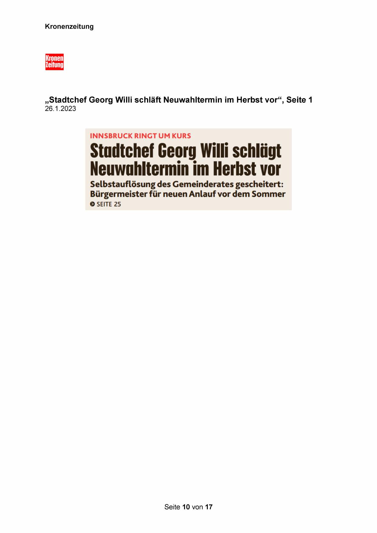 „Stadtchef Georg Willi schläft Neuwahltermin im Herbst vor“, Seite 1
