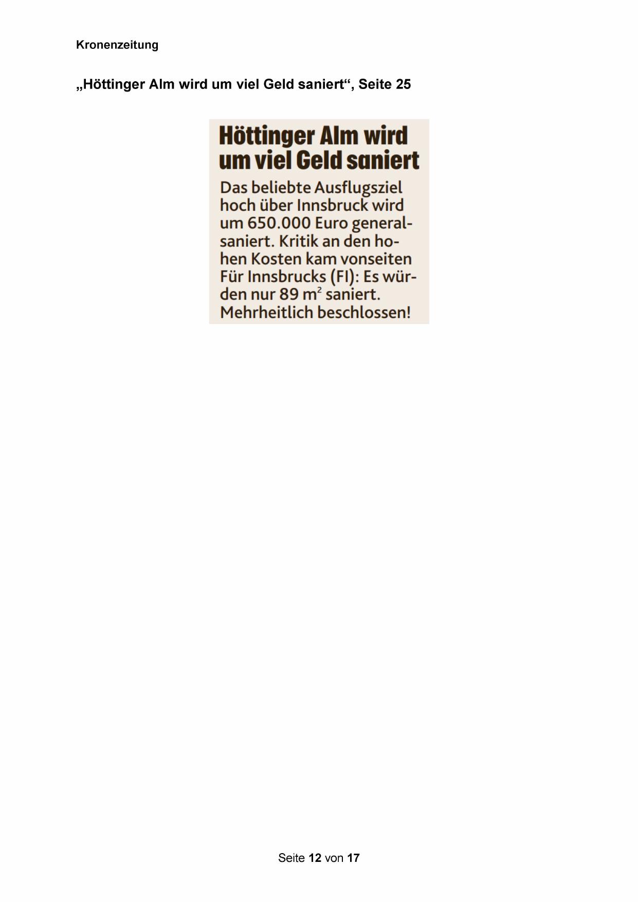 „Höttinger Alm wird um viel Geld saniert“, Seite 25