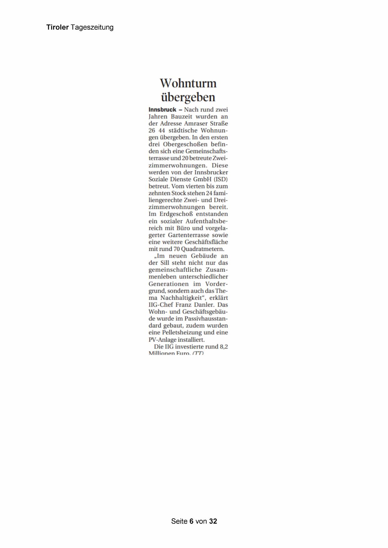 drei Obergeschoßen befinden sich eine Gemeinschaftsterrasse und 20 betreute Zweizimmerwohnungen. Diese