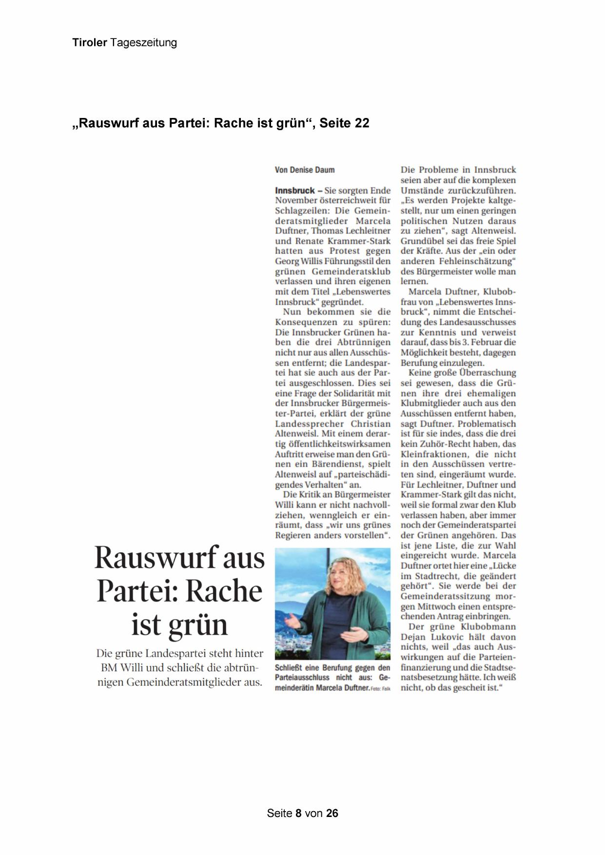 der Innsbrucker Bürgermeister-Partei, erklärt der grüne