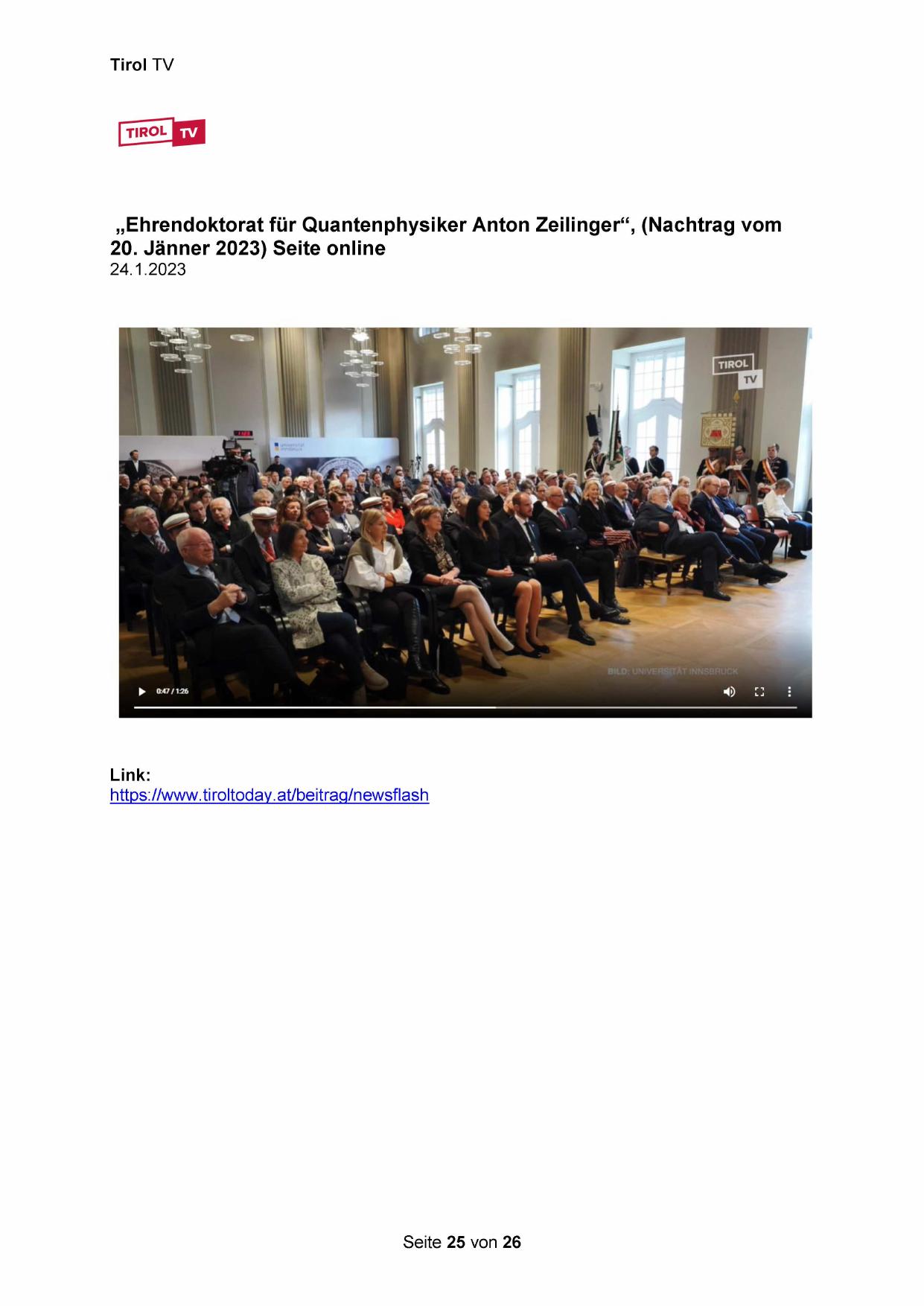 „Ehrendoktorat für Quantenphysiker Anton Zeilinger“, (Nachtrag vom