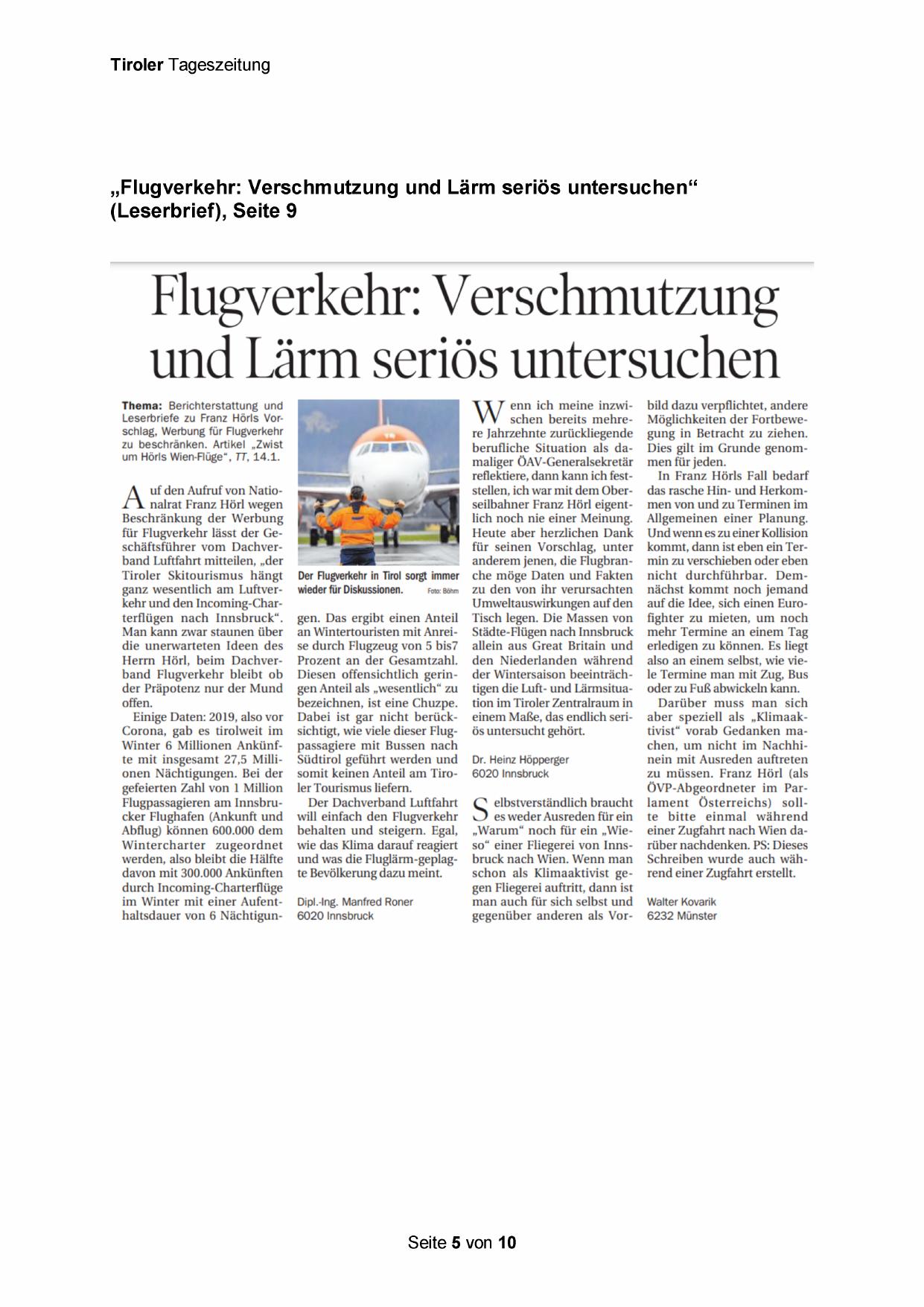 um Hörls Wien-Flüge“, TT, 14.1.