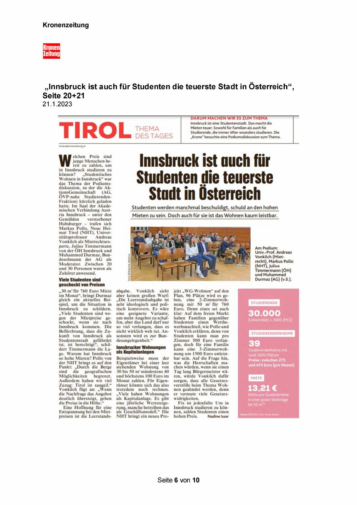 „Innsbruck ist auch für Studenten die teuerste Stadt in Österreich“,