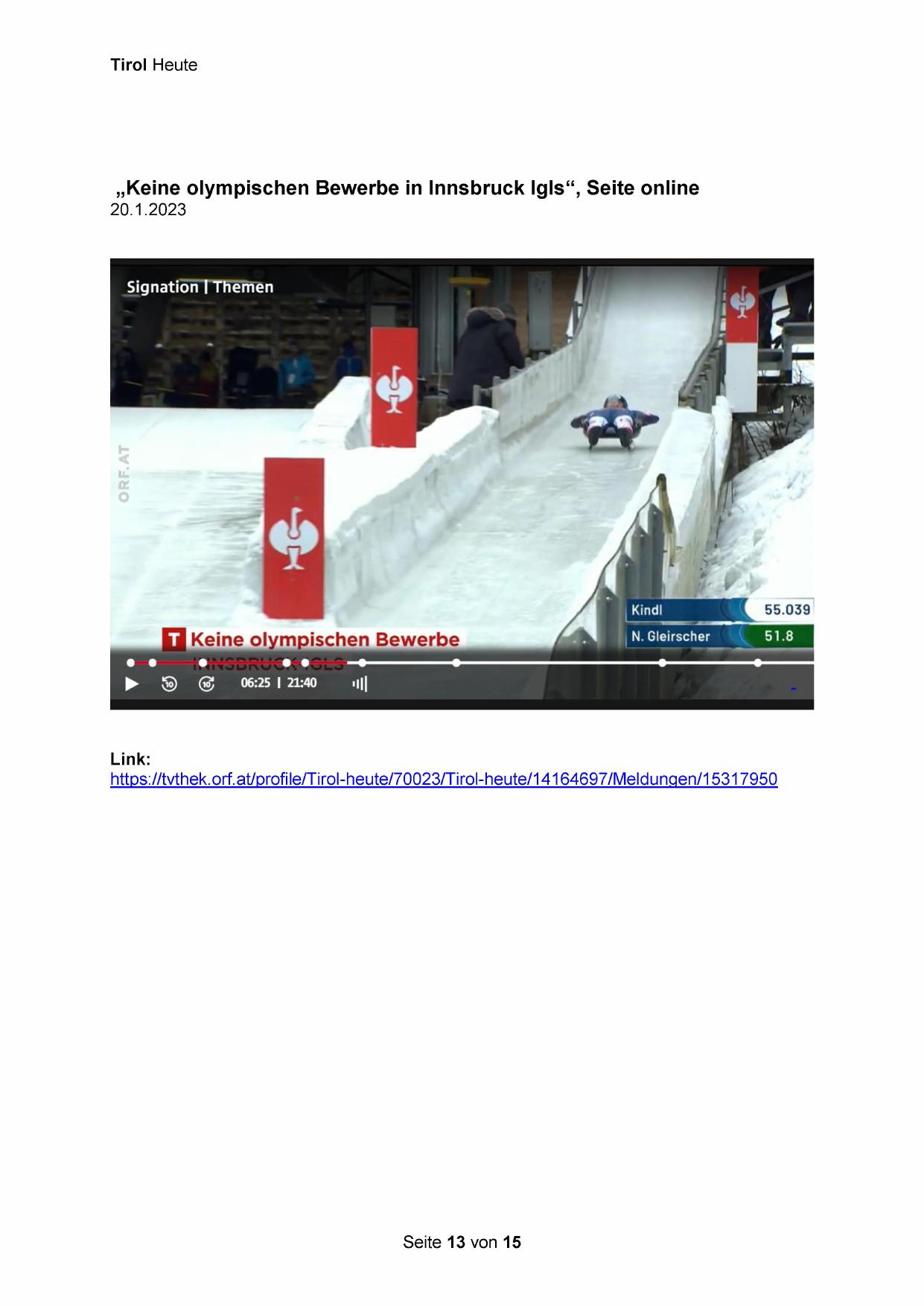 „Keine olympischen Bewerbe in Innsbruck Igls‘“, Seite online