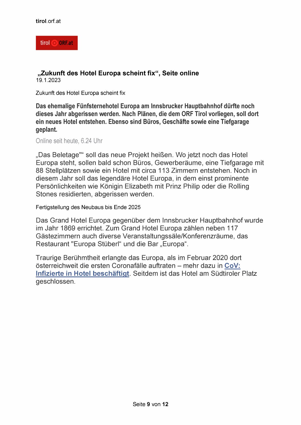 „Zukunft des Hotel Europa scheint fix‘“, Seite online