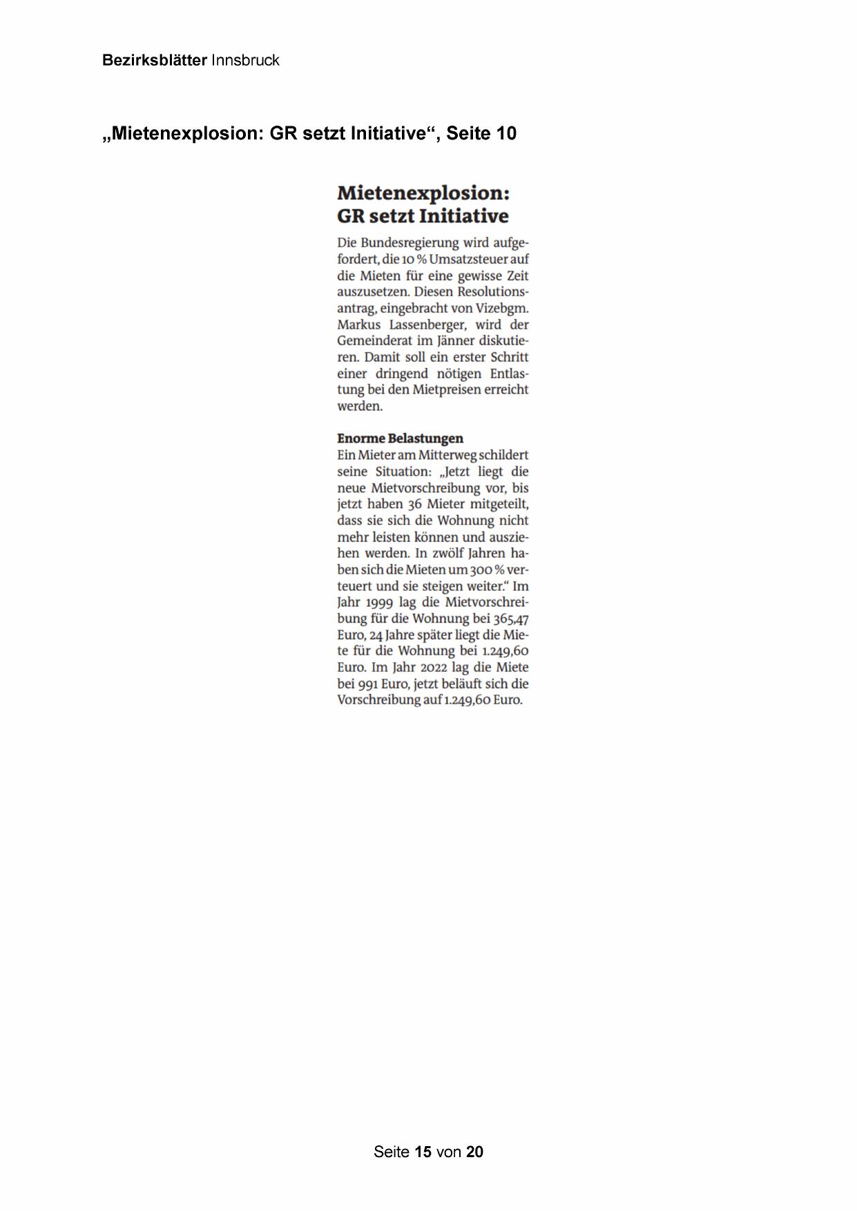 „Mietenexplosion: GR setzt Initiative“, Seite 10