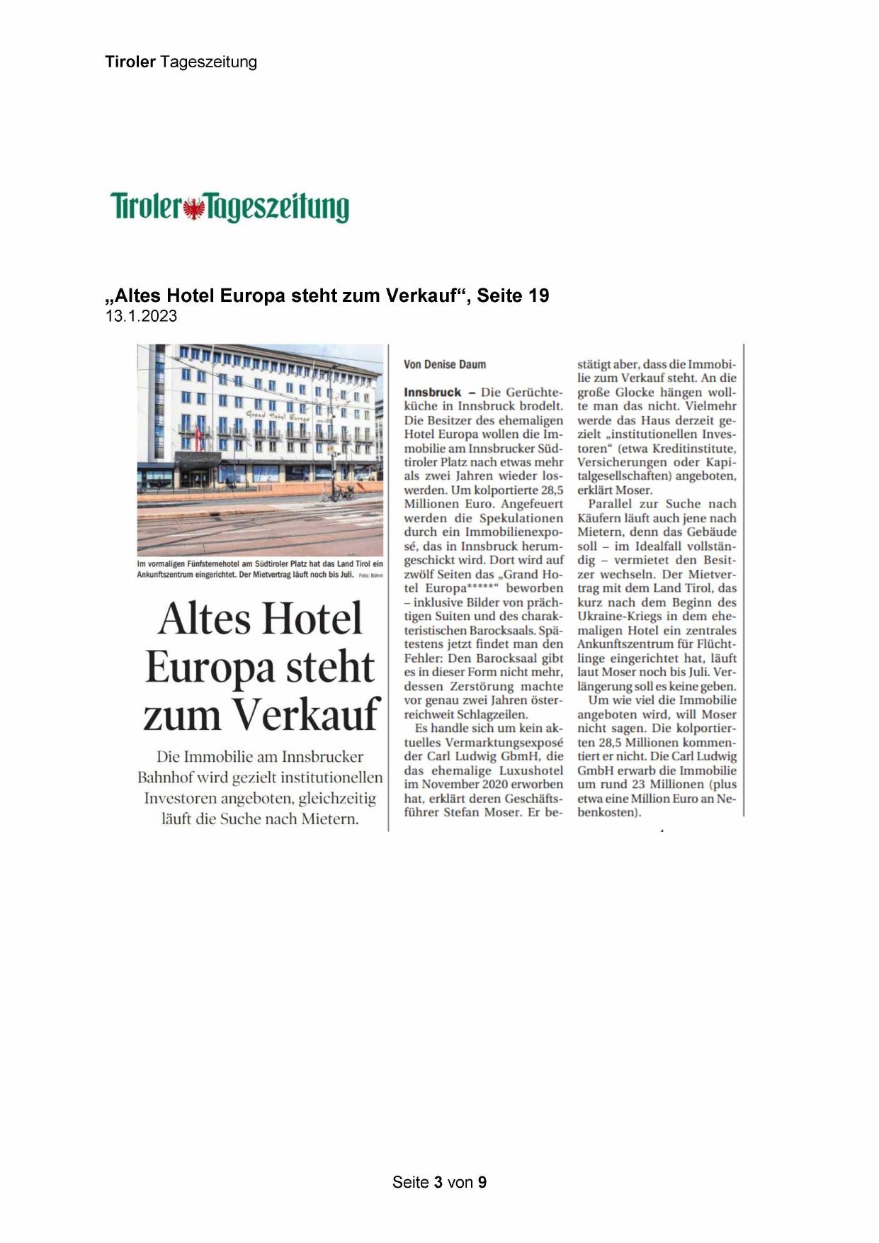 Hotel Europa wollen die Immobilie am Innsbrucker Südtiroler Platz nach etwas mehr