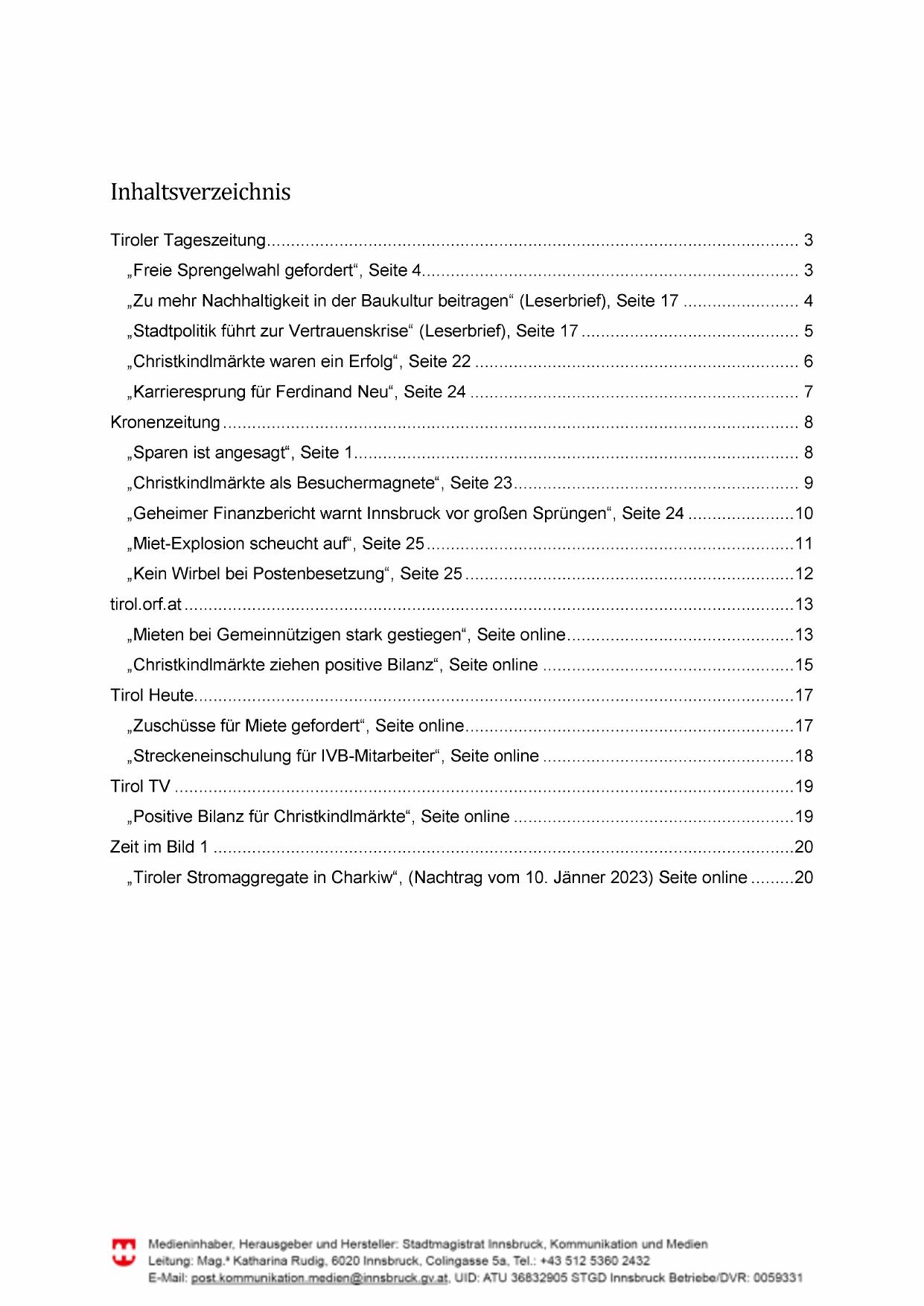 Medieninhaber, Herausgeber und Hersteller: Stadtmagistrat Innsbruck, Kommunikation und Medien