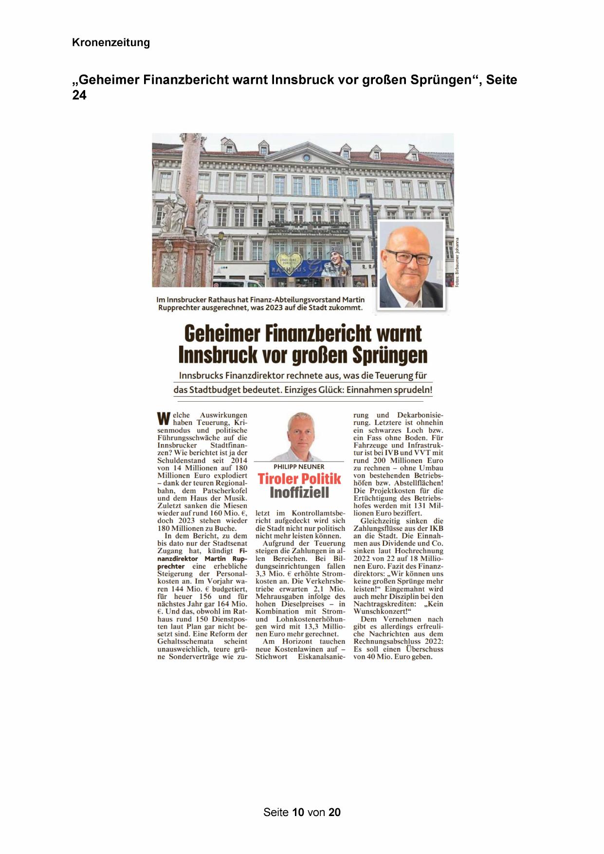 „Geheimer Finanzbericht warnt Innsbruck vor großen Sprüngen“, Seite