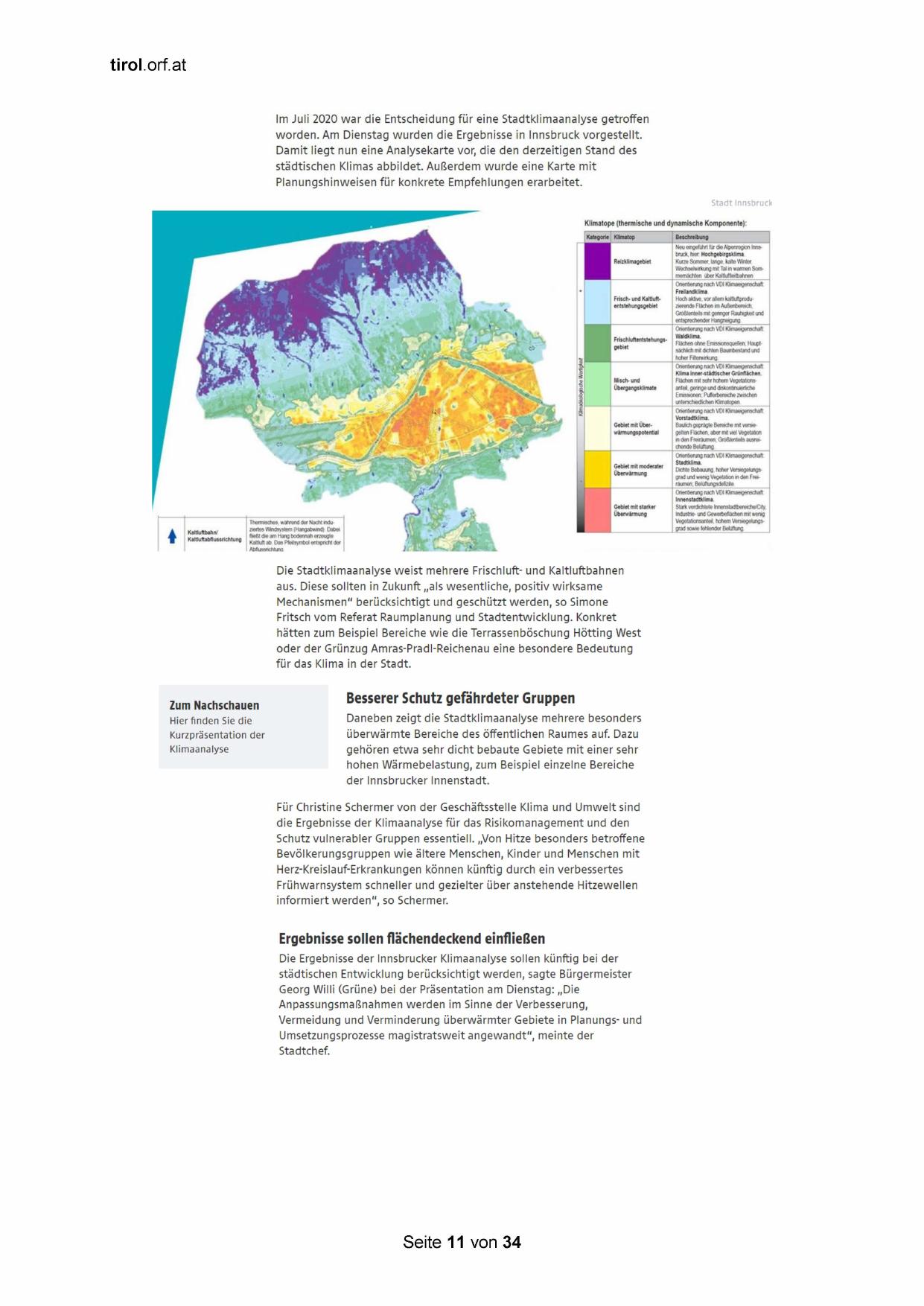 Die Ergebnisse der Innsbrucker Klimaanalyse sollen künftig bei der