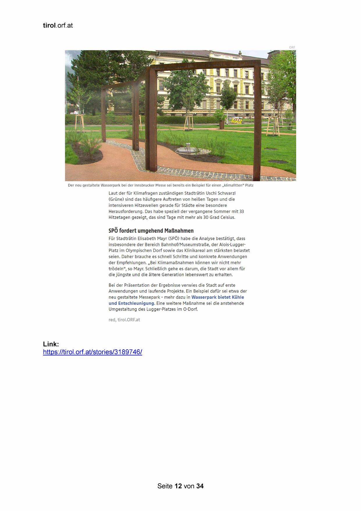 Der neu gestaltete Wasserpark bei der Innsbrucker Messe sei bereits ein Beispiel für einen „klimafıtten“ Platz