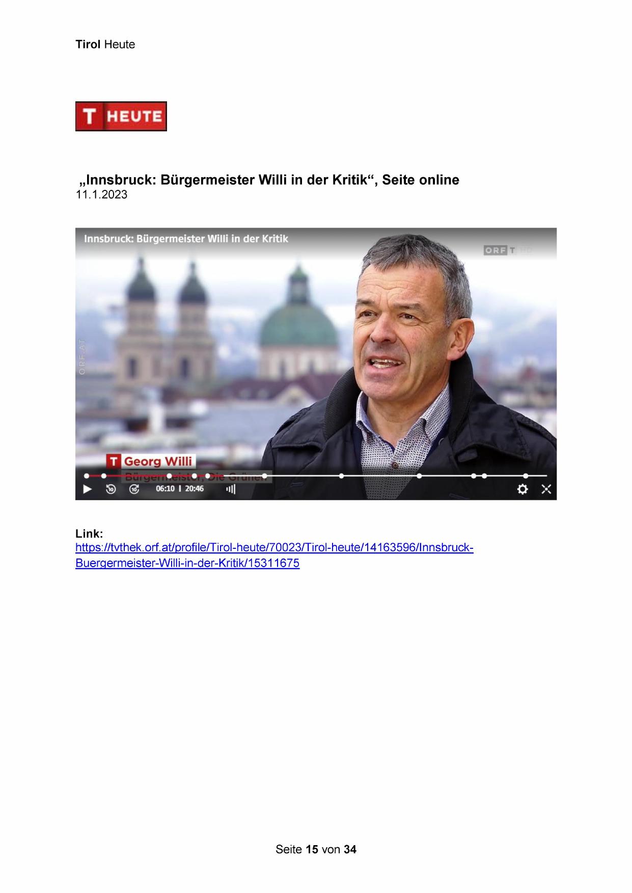 „Innsbruck: Bürgermeister Willi in der Kritik‘“, Seite online