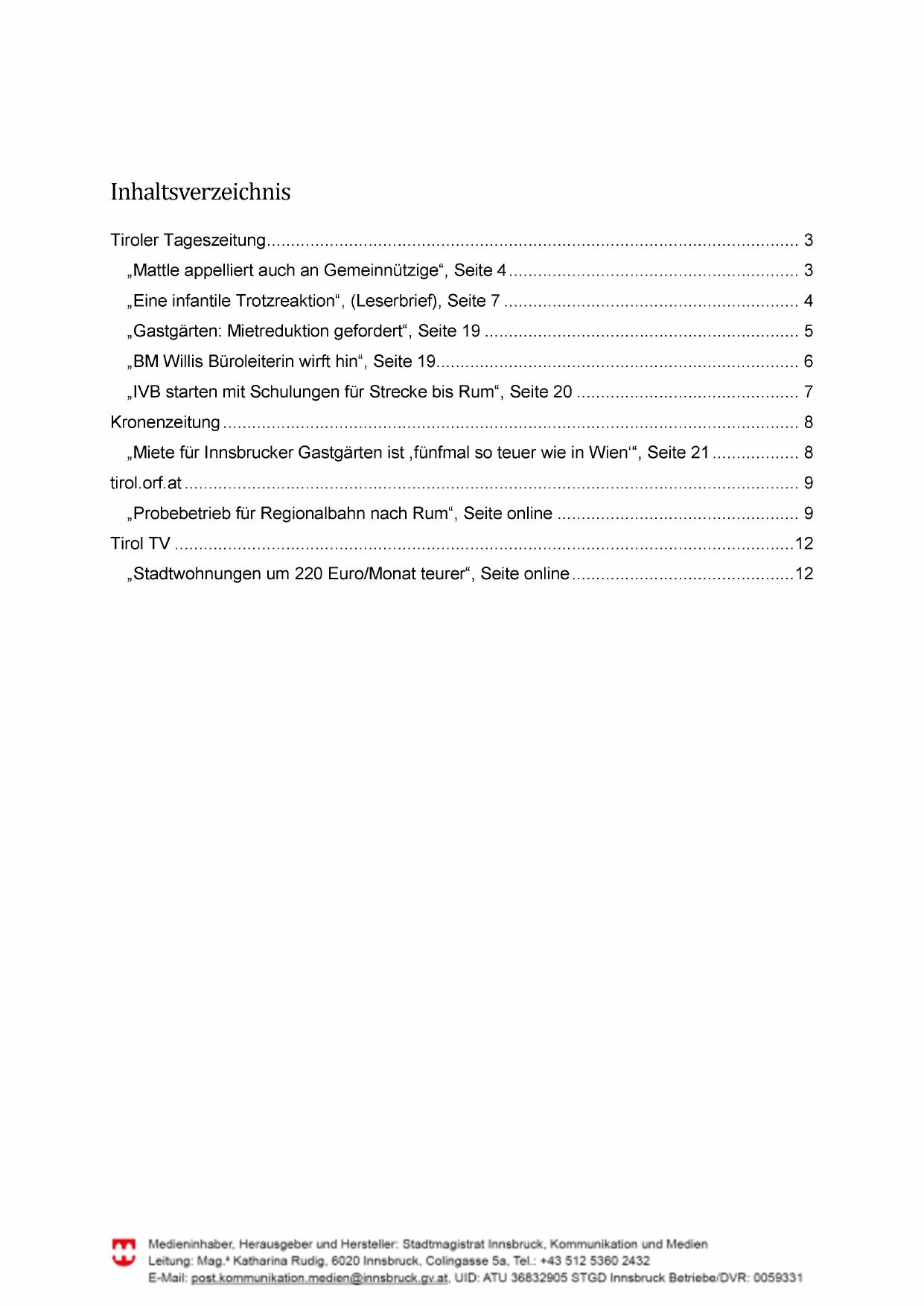 „Miete für Innsbrucker Gastgärten ist ‚fünfmal so teuer wie in Wien‘“, Seite 21.................. 8
