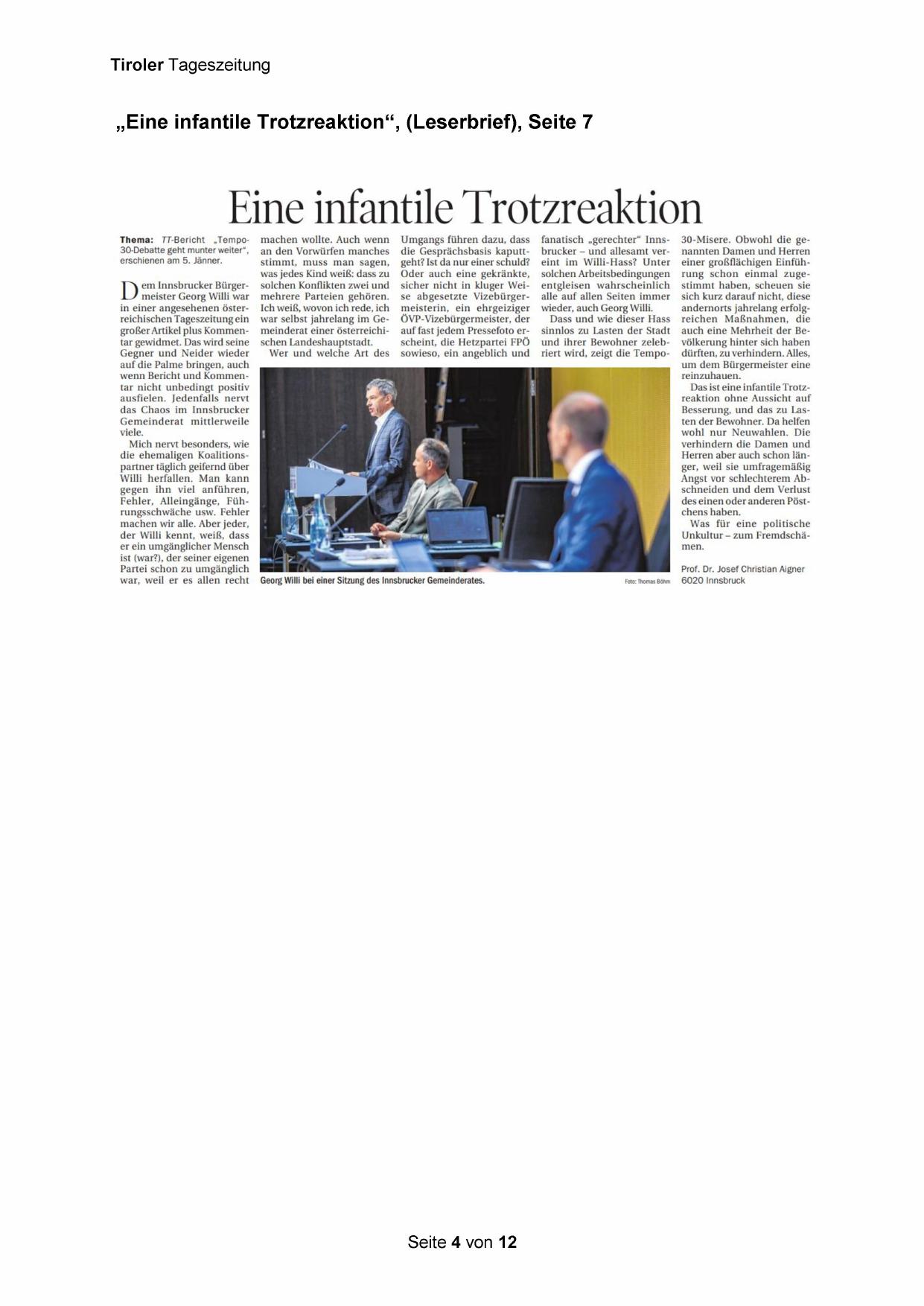 „Eine infantile Trotzreaktion“, (Leserbrief), Seite 7