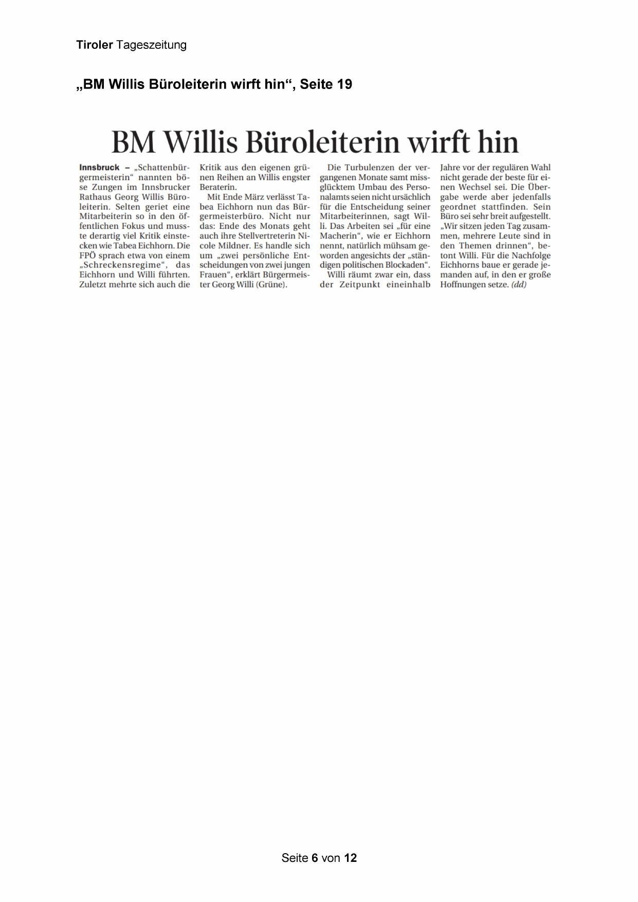 „BM Willis Büroleiterin wirft hin“, Seite 19