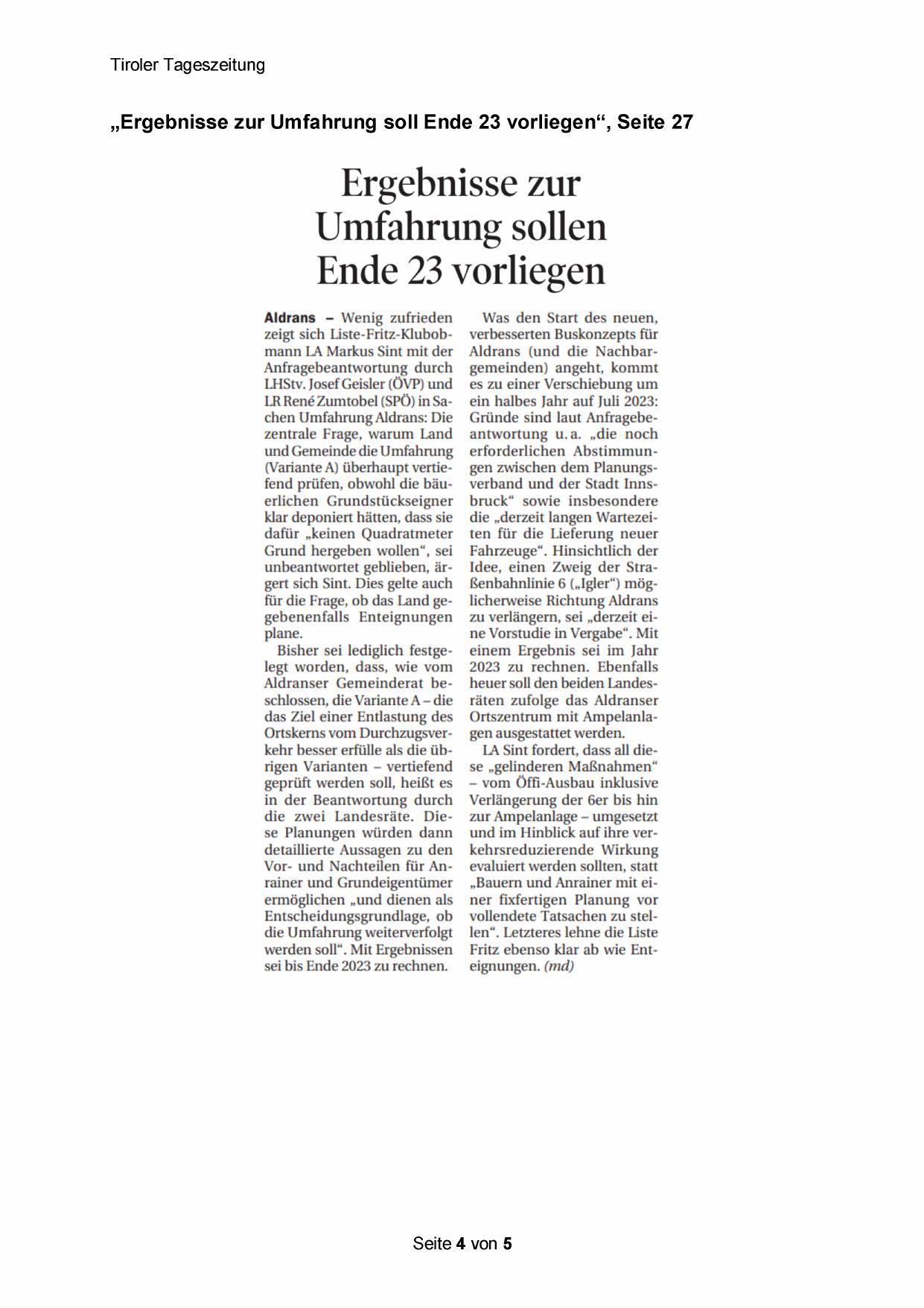 Aldrans (und die Nachbargemeinden) angeht, kommt