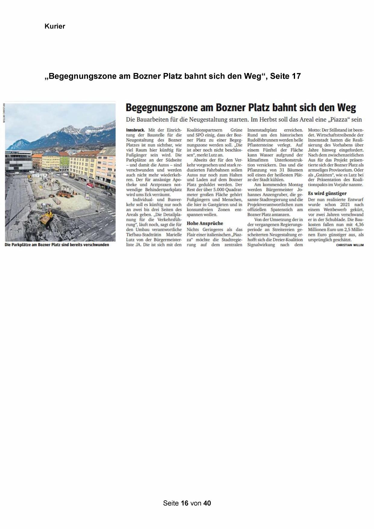 „Begegnungszone am Bozner Platz bahnt sich den Weg“, Seite 17