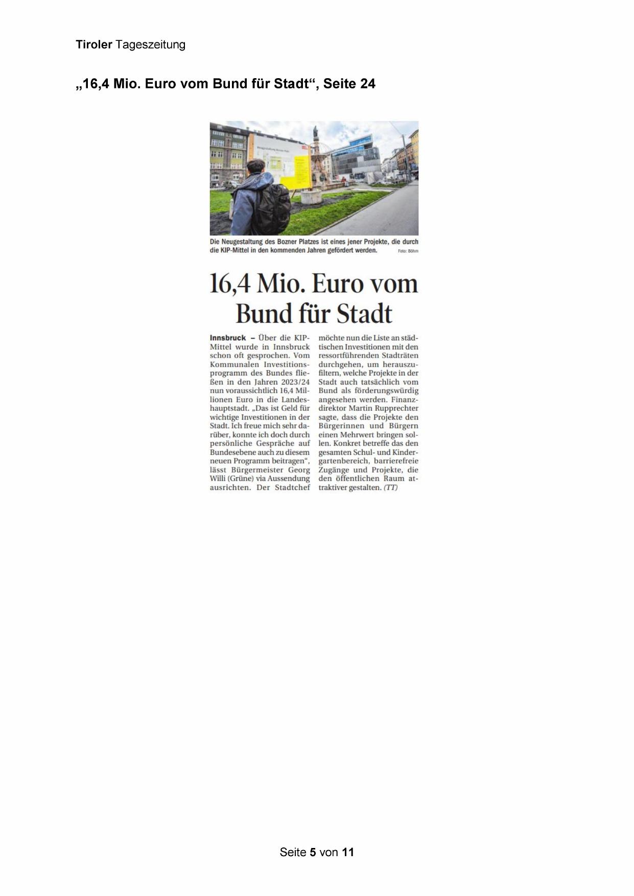 „16,4 Mio. Euro vom Bund für Stadt“, Seite 24