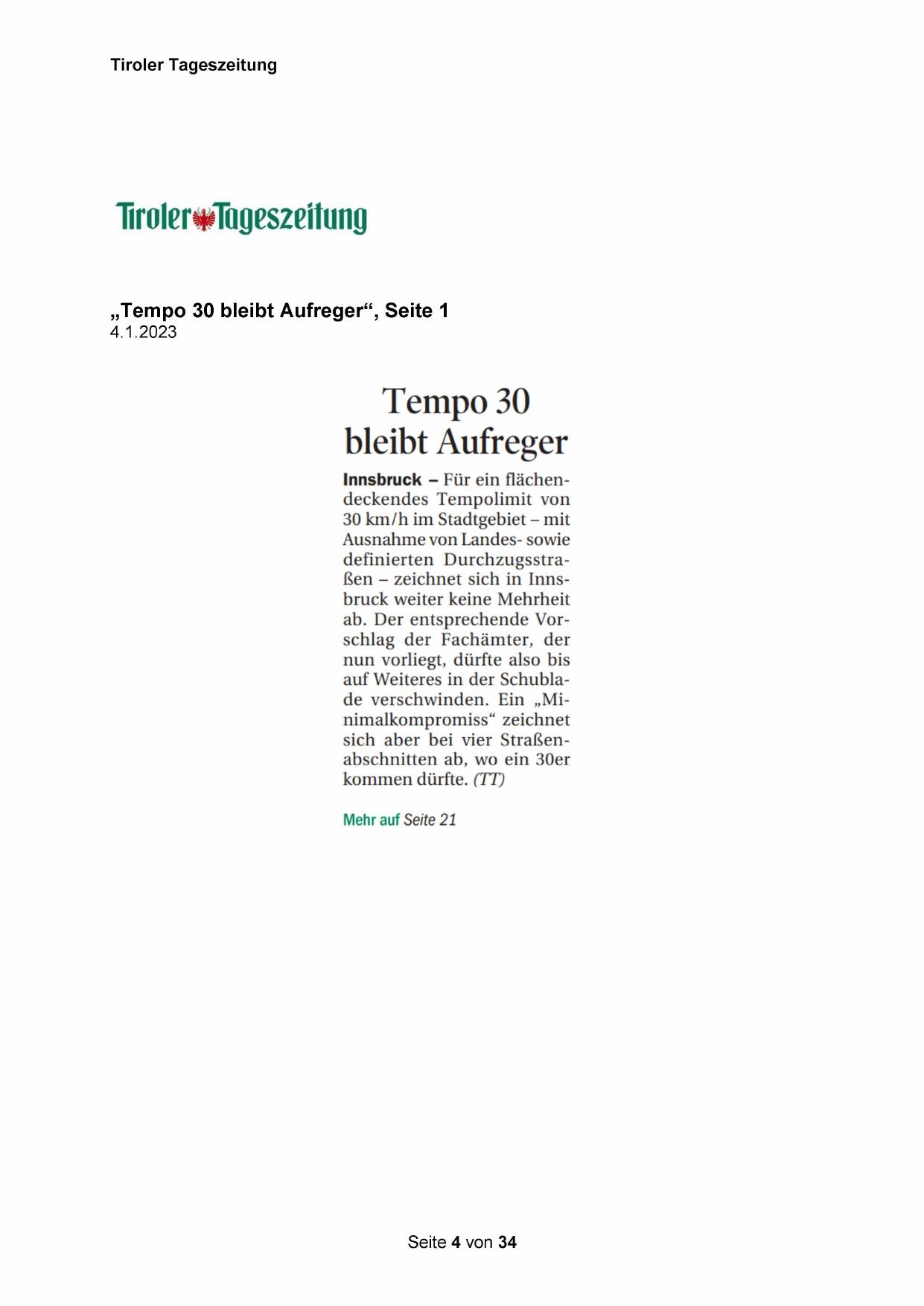 „Tempo 30 bleibt Aufreger“, Seite 1
