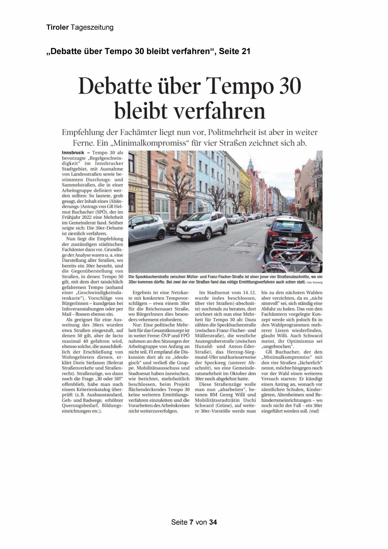 „Debatte über Tempo 30 bleibt verfahren“, Seite 21