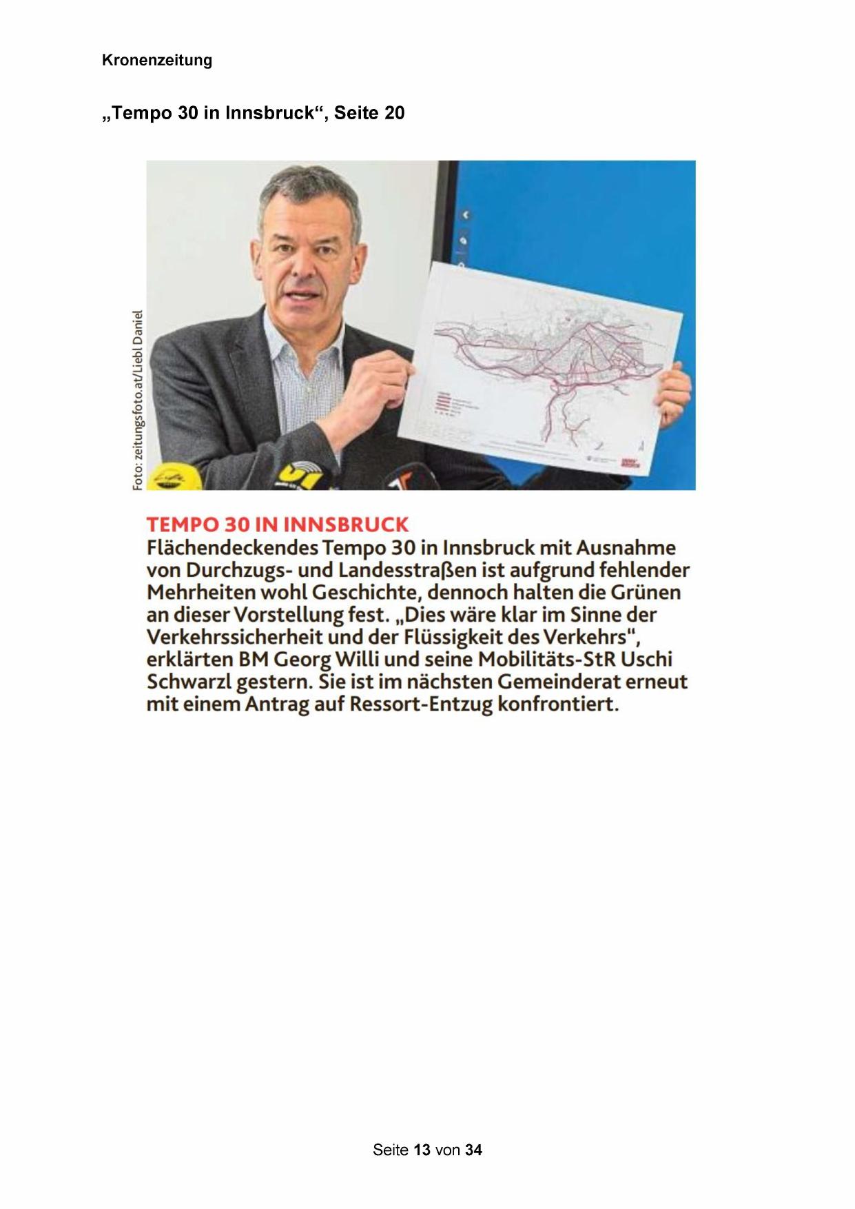 Flächendeckendes Tempo 30 in Innsbruck mit Ausnahme