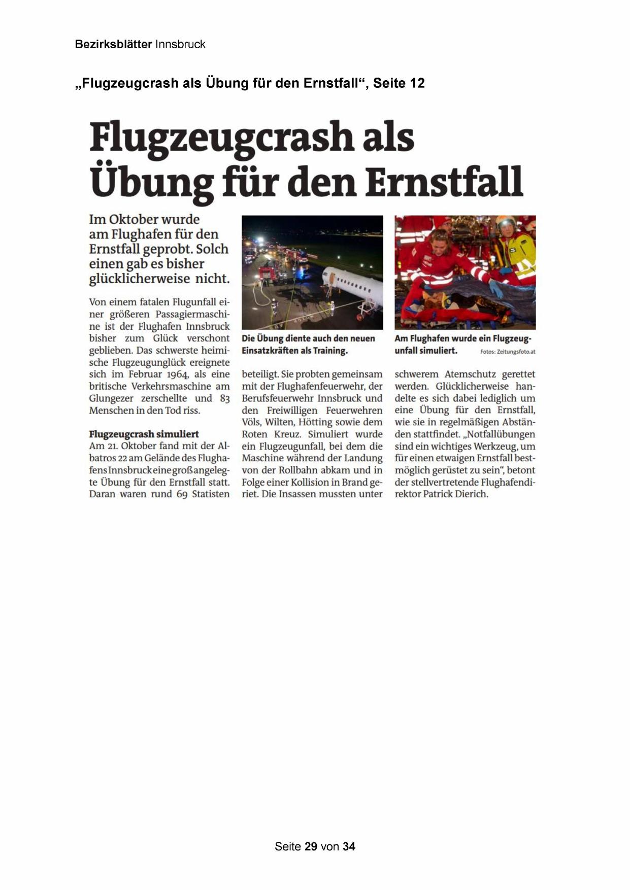 Am 21. Oktober fand mit der Albatros 22 am Gelände des FlughafensInnsbruckeine groß angelegte Übung für den Ernstfall statt.