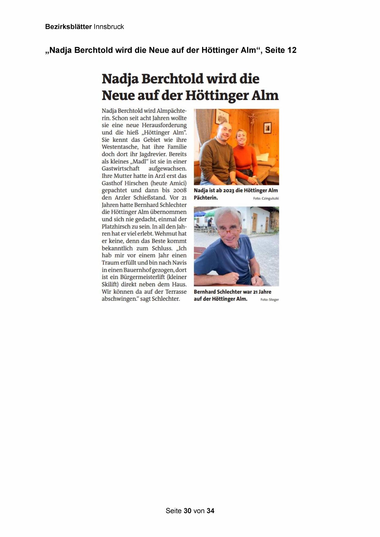 „Nadja Berchtold wird die Neue auf der Höttinger Alm“, Seite 12