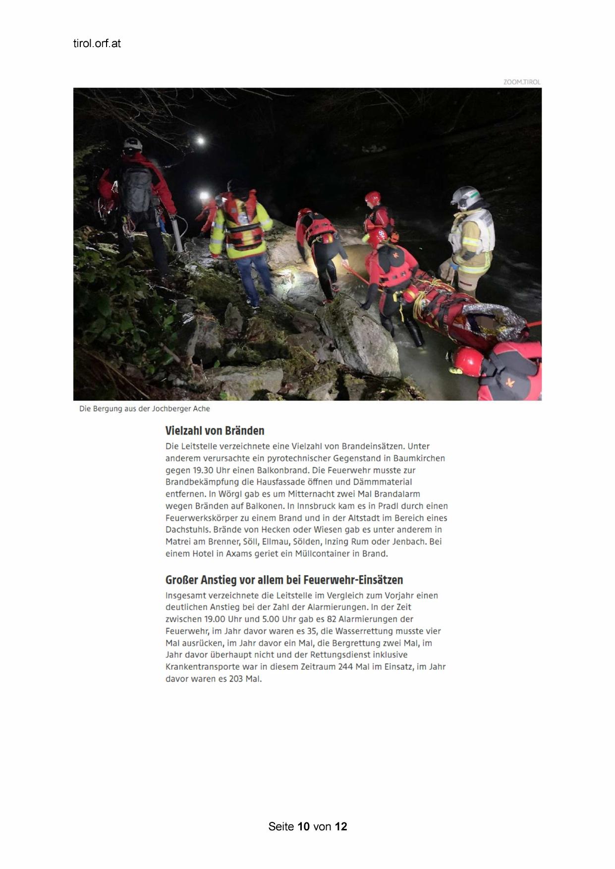Feuerwehr, im Jahr davor waren es 35, die Wasserrettung musste vier
