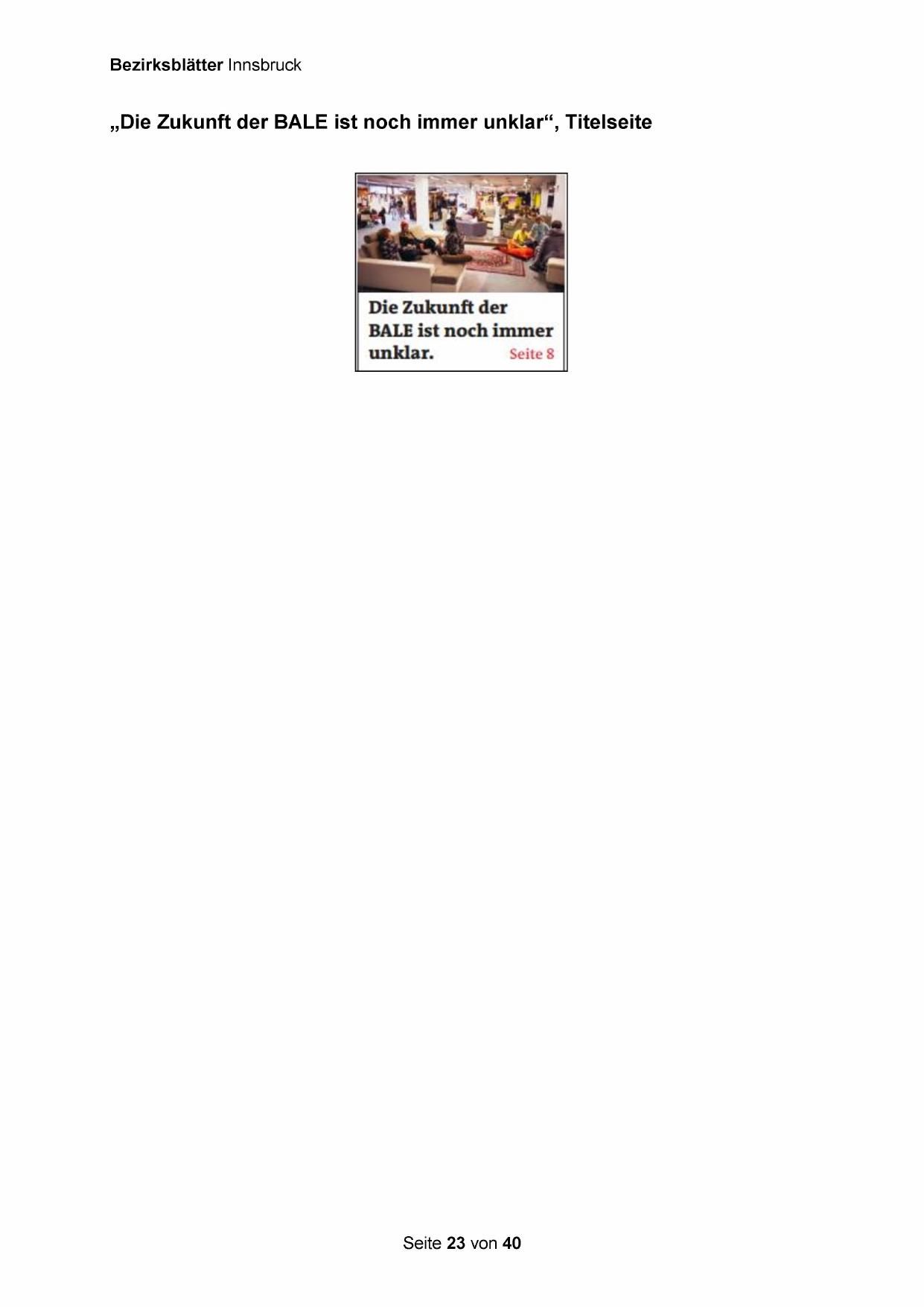 „Die Zukunft der BALE ist noch immer unklar“, Titelseite