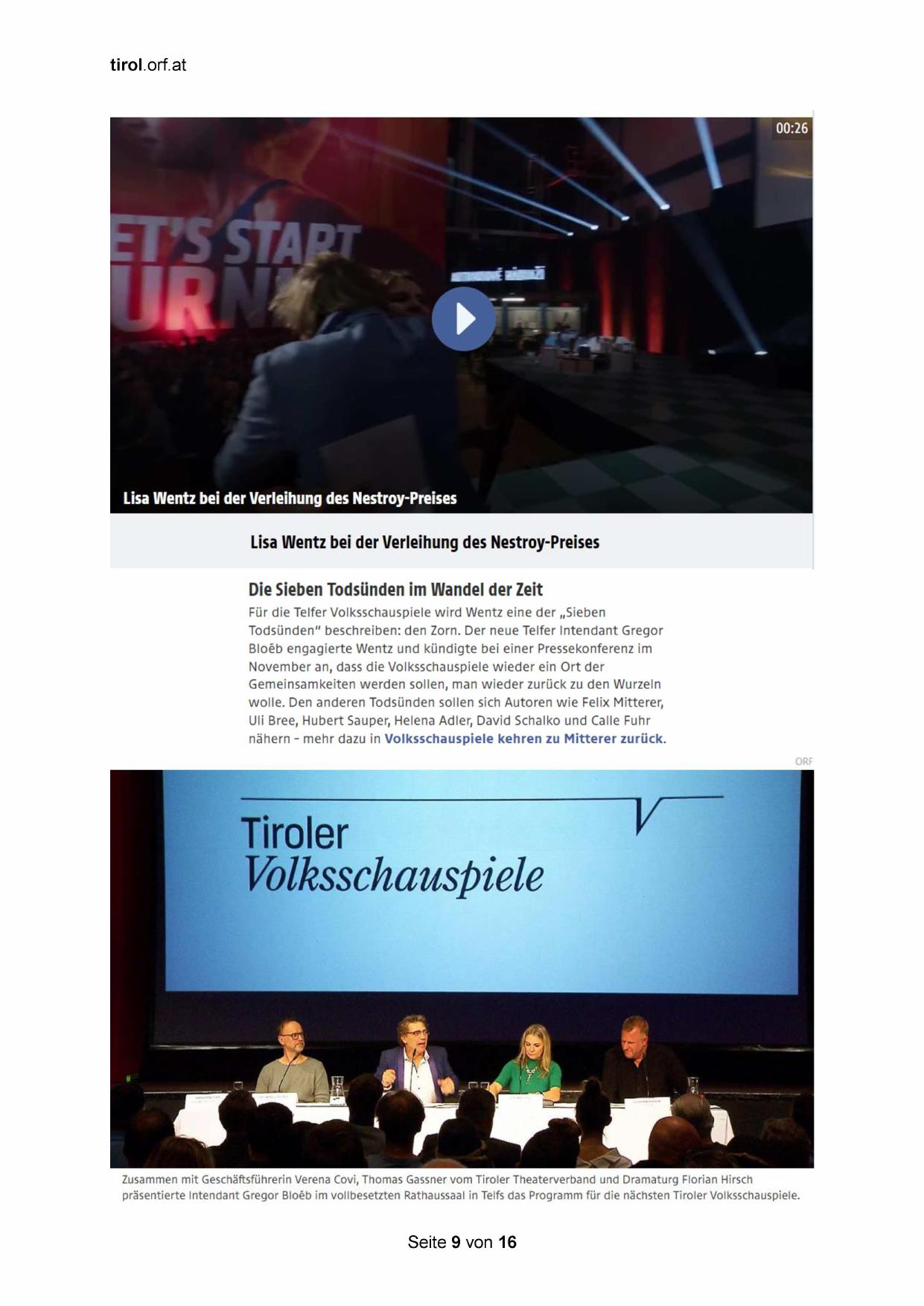 präsentierte Intendant Gregor Bloe@b im vollbesetzten Rathaussaal in Telfs das Programm für die nächsten Tiroler Volksschauspiele.