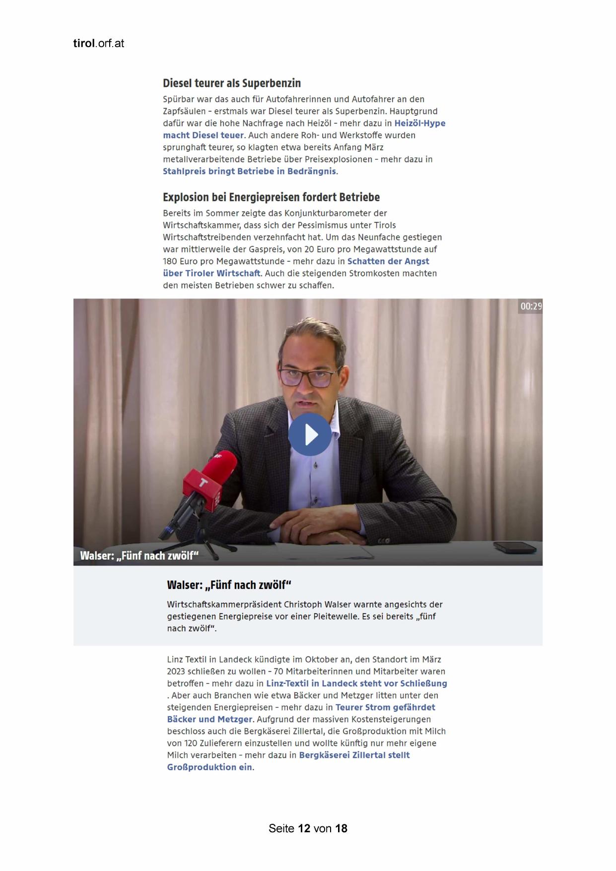 über Tiroler Wirtschaft. Auch die steigenden Stromkosten machten