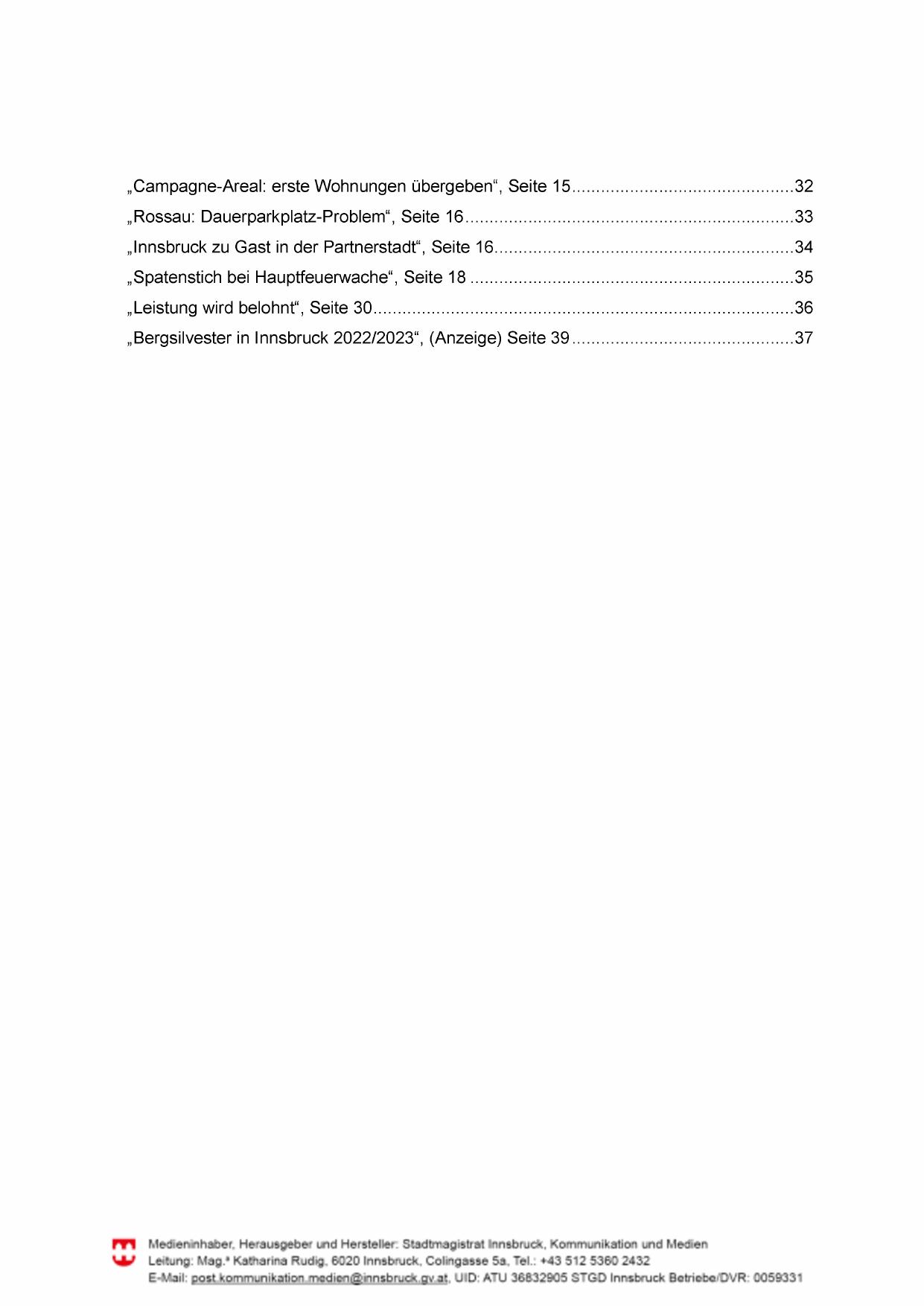 „Bergsilvester in Innsbruck 2022/2023“, (Anzeige) Seite 39 ... 37