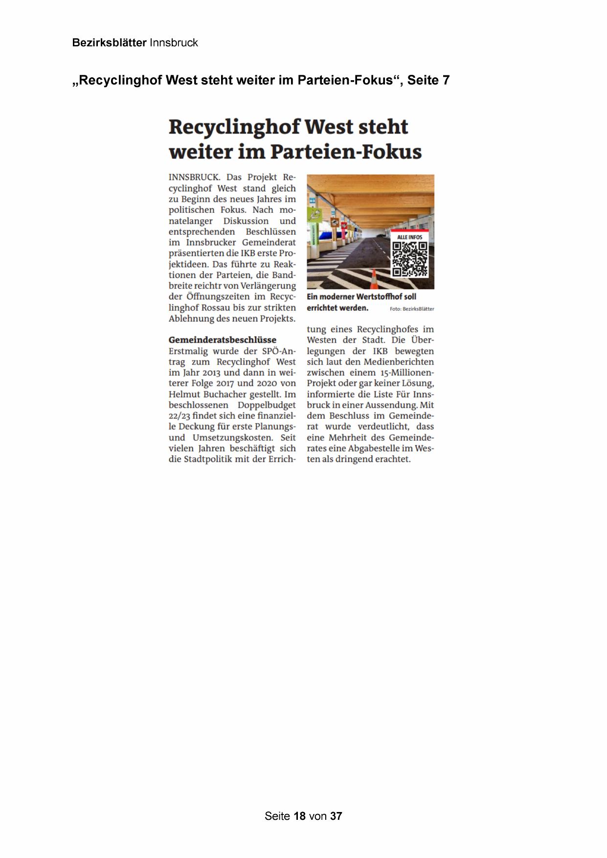 INNSBRUCK. Das Projekt Recyclinghof West stand gleich