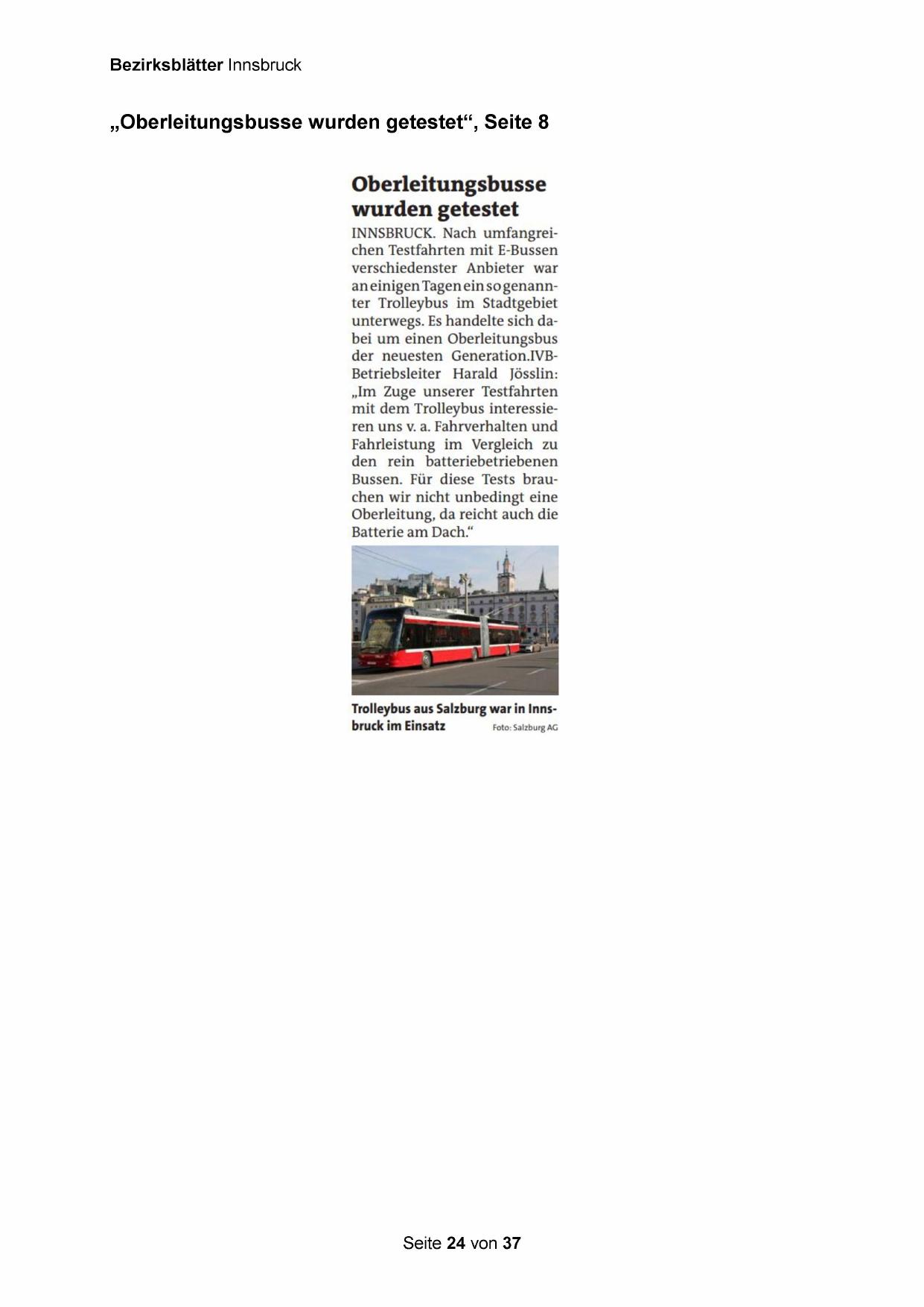 INNSBRUCK. Nach umfangreichen Testfahrten mit E-Bussen