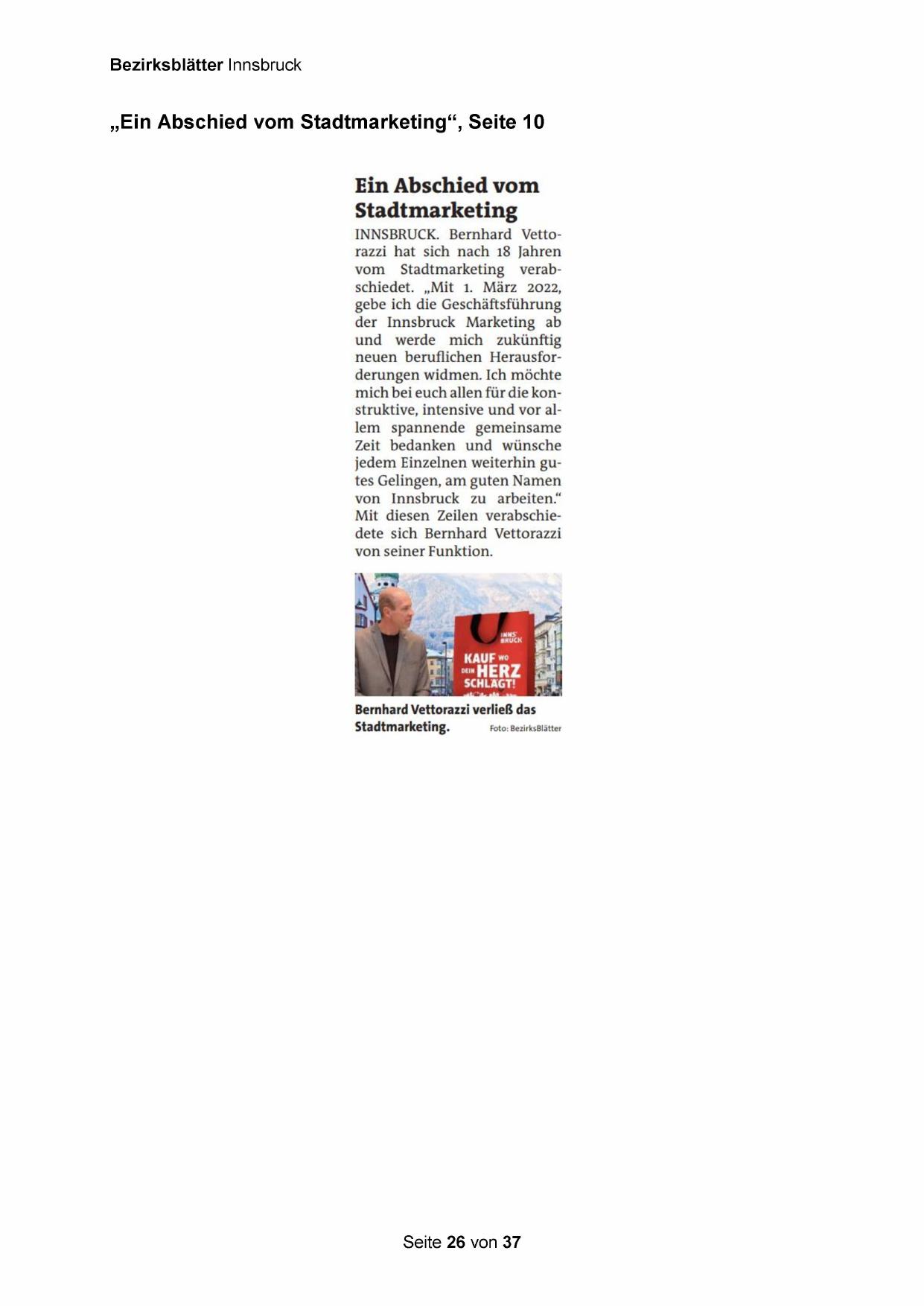INNSBRUCK. Bernhard Vettorazzi hat sich nach 18 Jahren