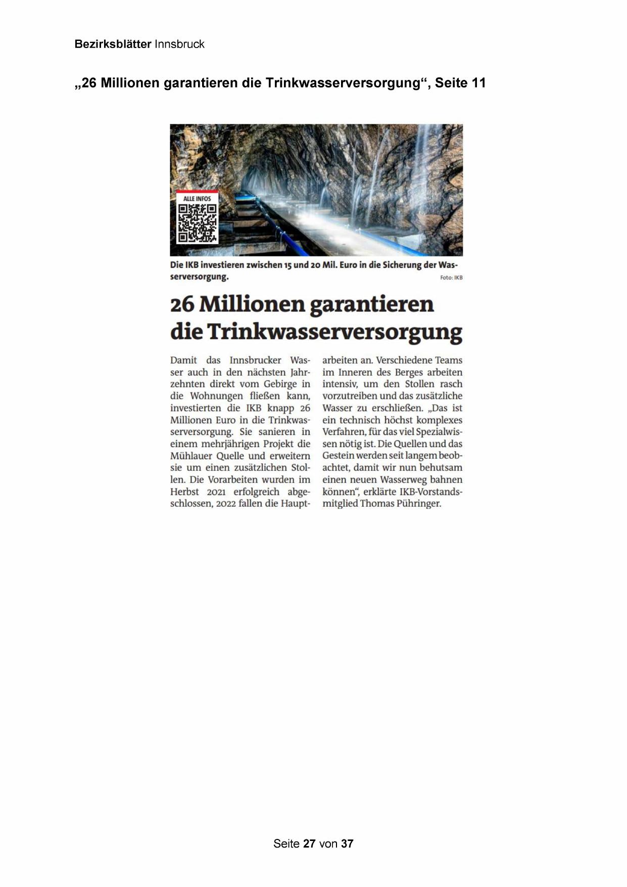 Damit das Innsbrucker Wasser auch in den nächsten Jahrzehnten direkt vom Gebirge in