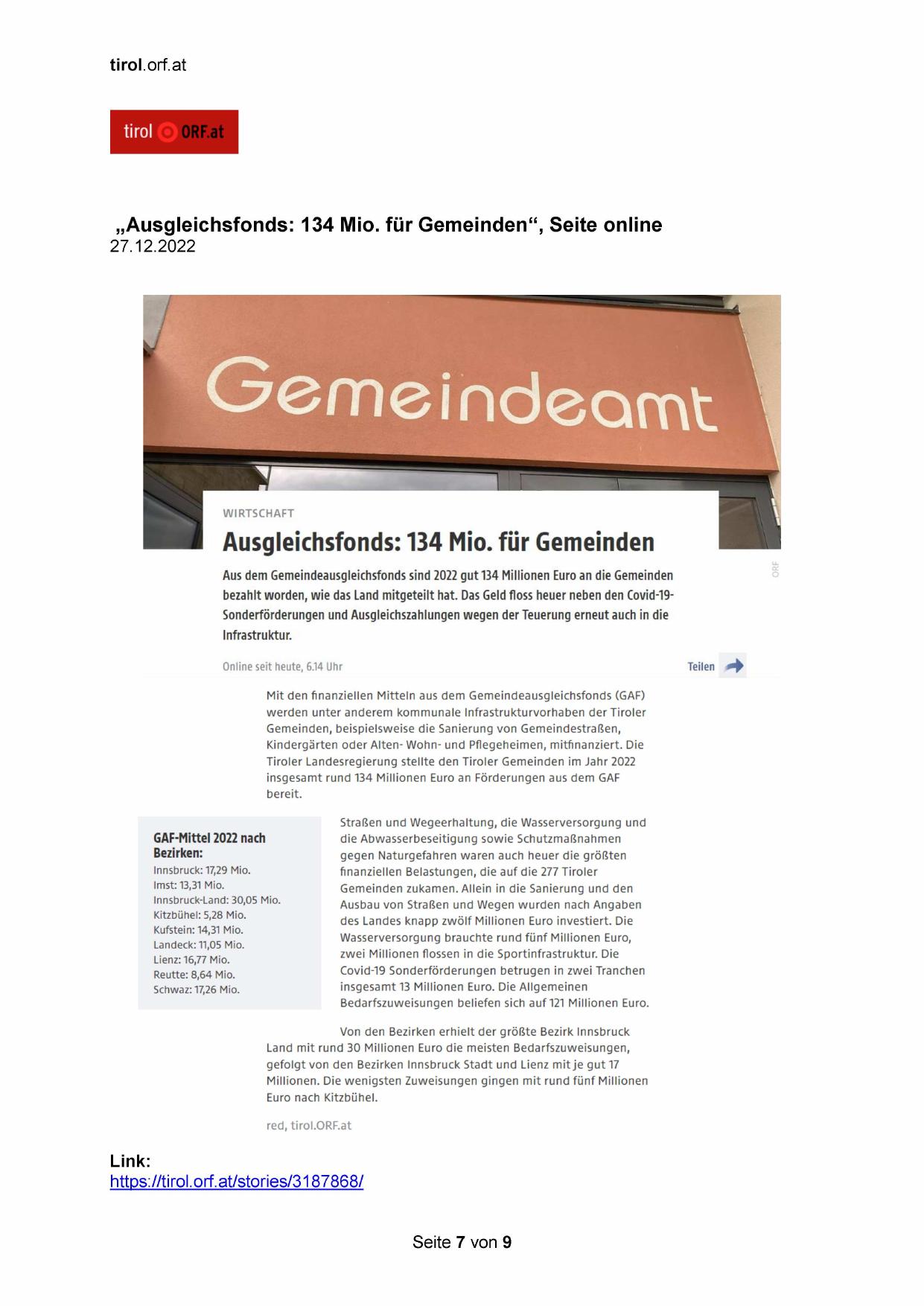 „Ausgleichsfonds: 134 Mio. für Gemeinden“, Seite online