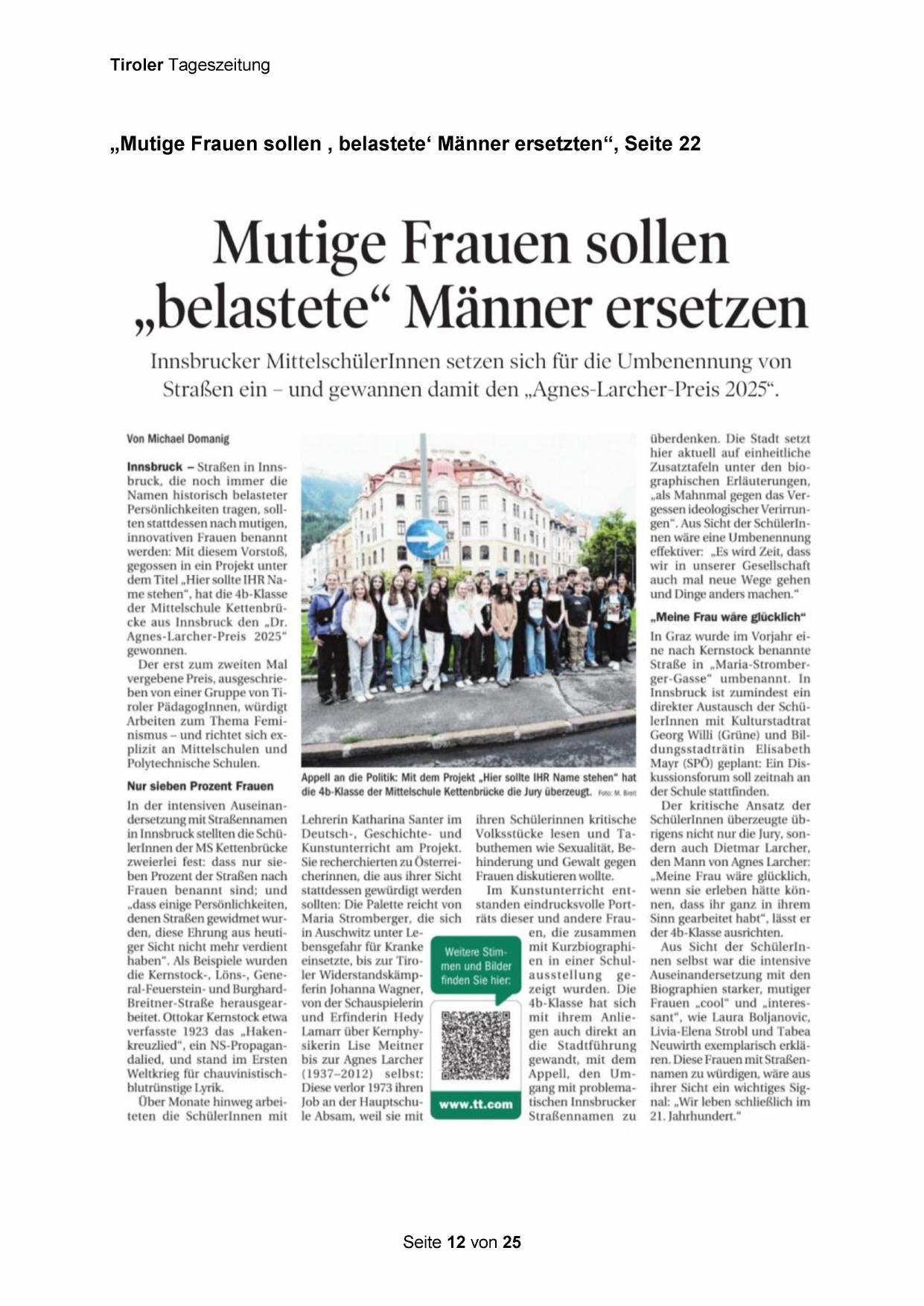 Straßen ein - und gewannen damit den „Agnes-Larcher-Preis 2025“.