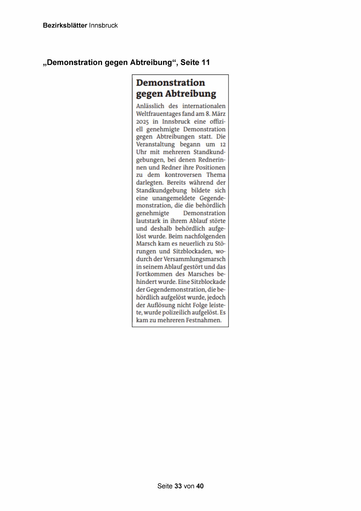 2025 in Innsbruck eine offiziell genehmigte Demonstration