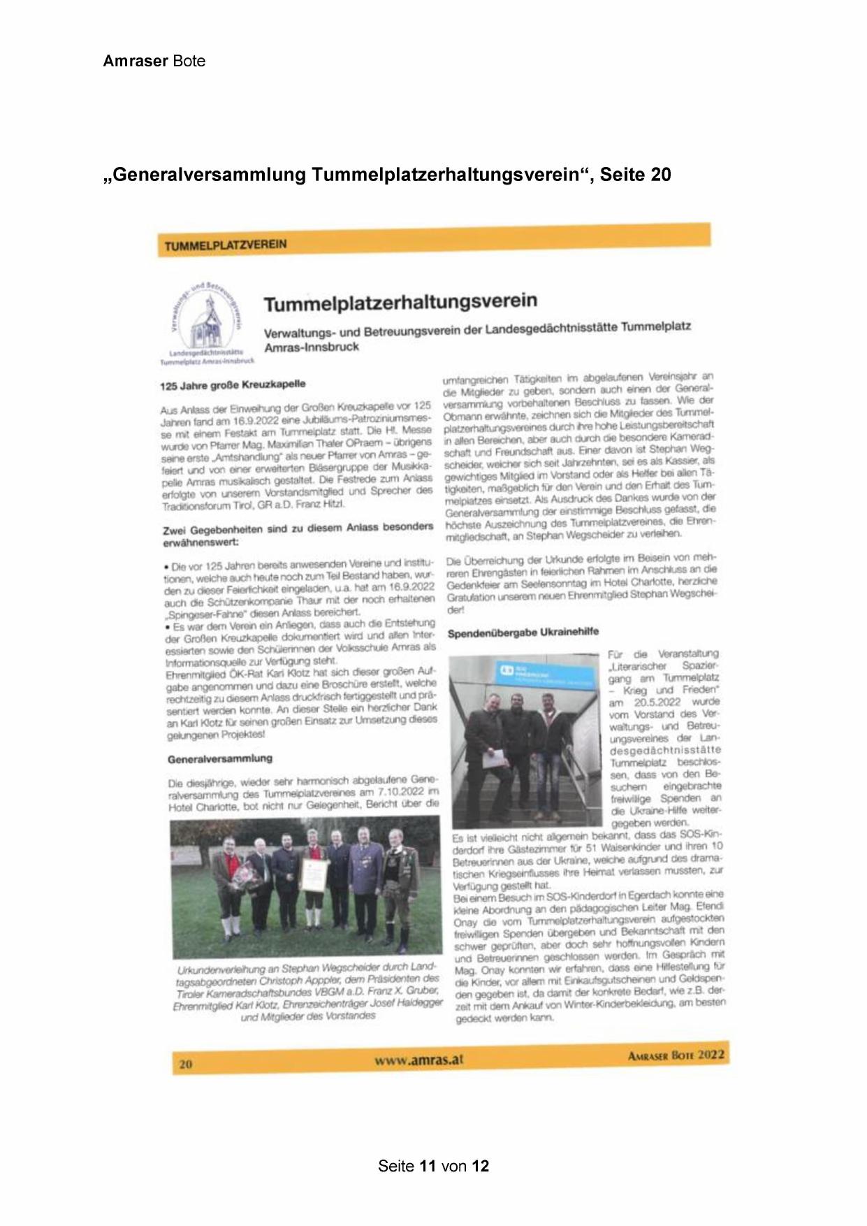 höächste Auszeichnung des Tummeiplatzvereines, die Ehranmitgliedschaft, an Stephan Wegscheider zu verlahen.