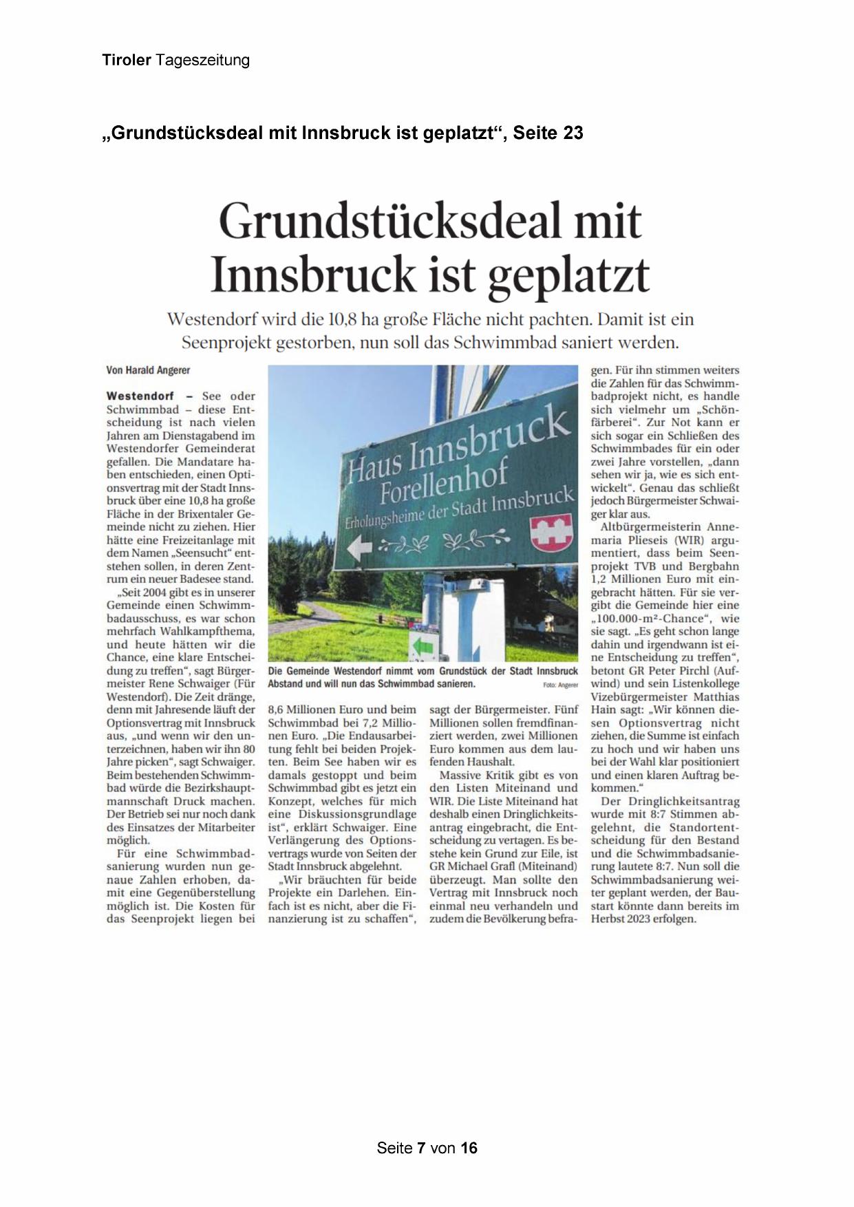 „Grundstücksdeal mit Innsbruck ist geplatzt“, Seite 23