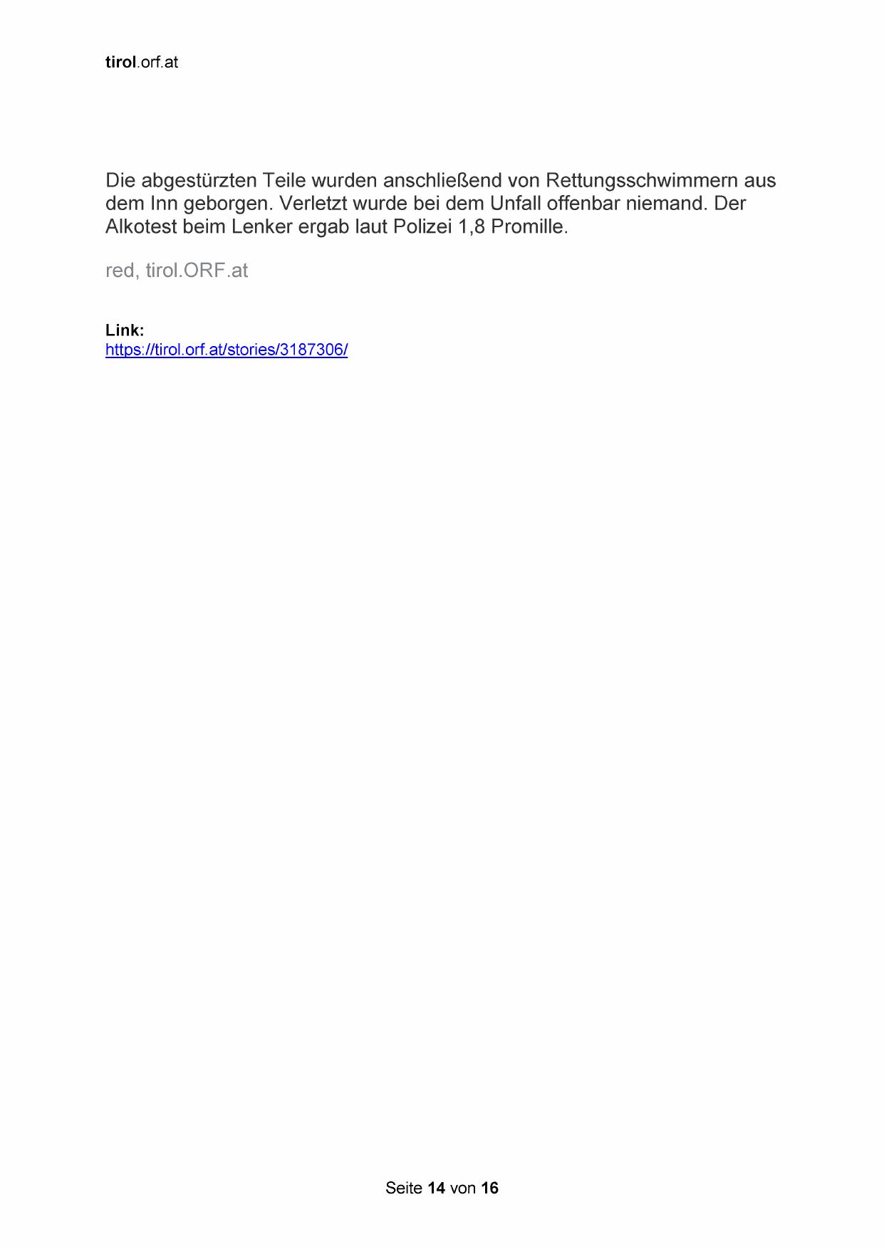 dem Inn geborgen. Verletzt wurde bei dem Unfall offenbar niemand. Der
