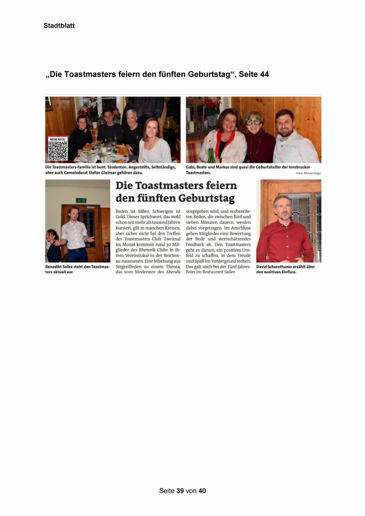 „Die Toastmasters feiern den fünften Geburtstag“, Seite 44